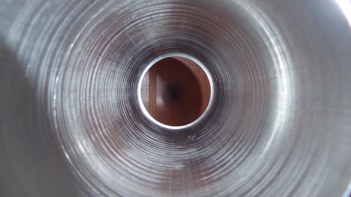 Tłok dosłownie orze po ścianach i nie jest to moja wina, po prostu na tym gwintowanym pręcie ma taki luz, że lata na boki. Gdyby jeszcze ślizgał się po ścianach to nic by nie było ale on się jakby klinuje i puszcza raz za razem, tworząc bruzdy widoczne na foto.