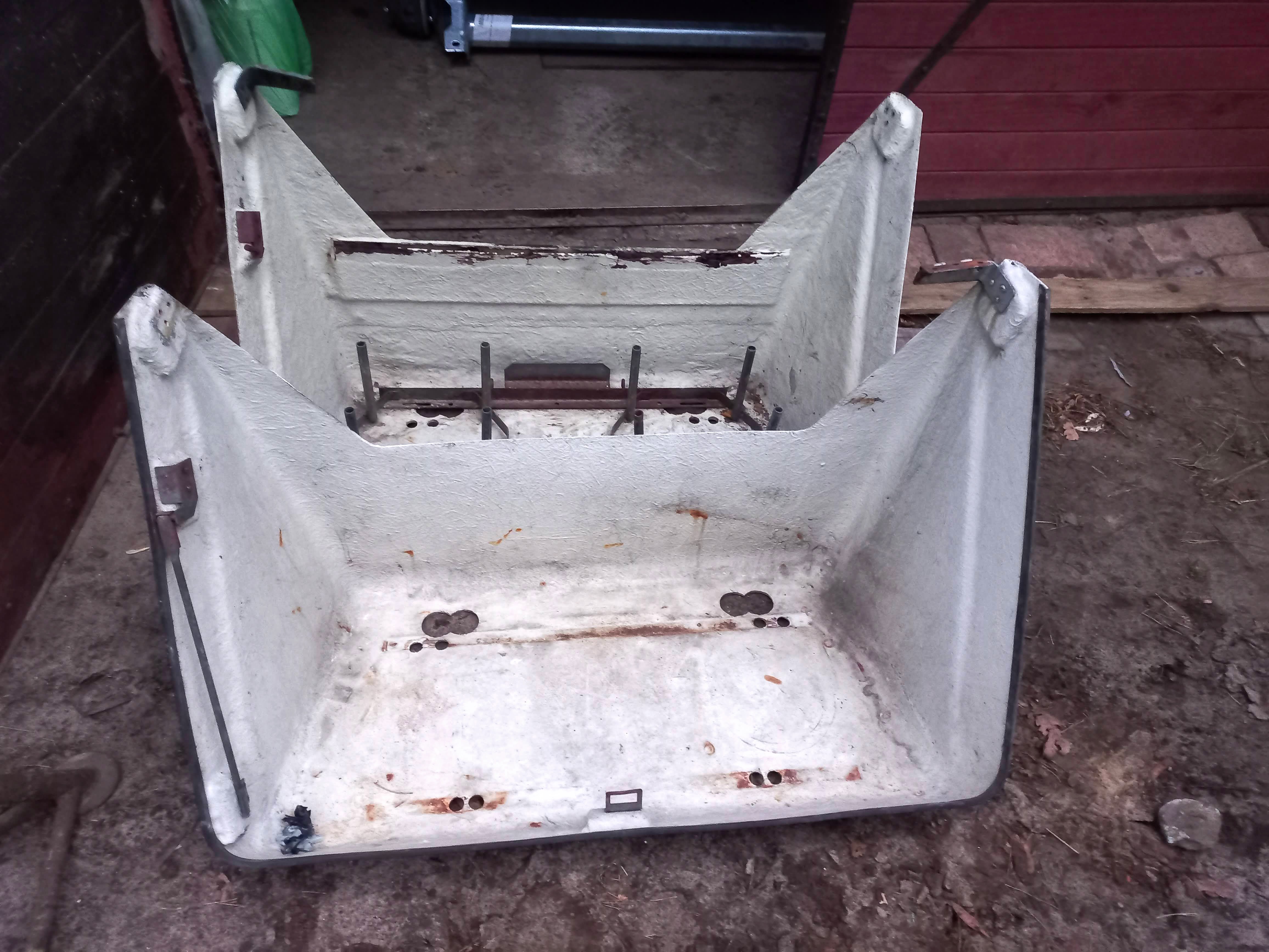 ale szczęśliwie braki jednego nie pokrywały się z brakami drugiego. pierwszy miał tylko lewy zawias to drugi miał tylko drugi. Pierwszy miał mocowanie butli a drugi pokrywę i wspornik. Tak więc z dwóch powstał jeden kompletny, który oczywiście wymaga renowacji ale jest i się zamyka. :D