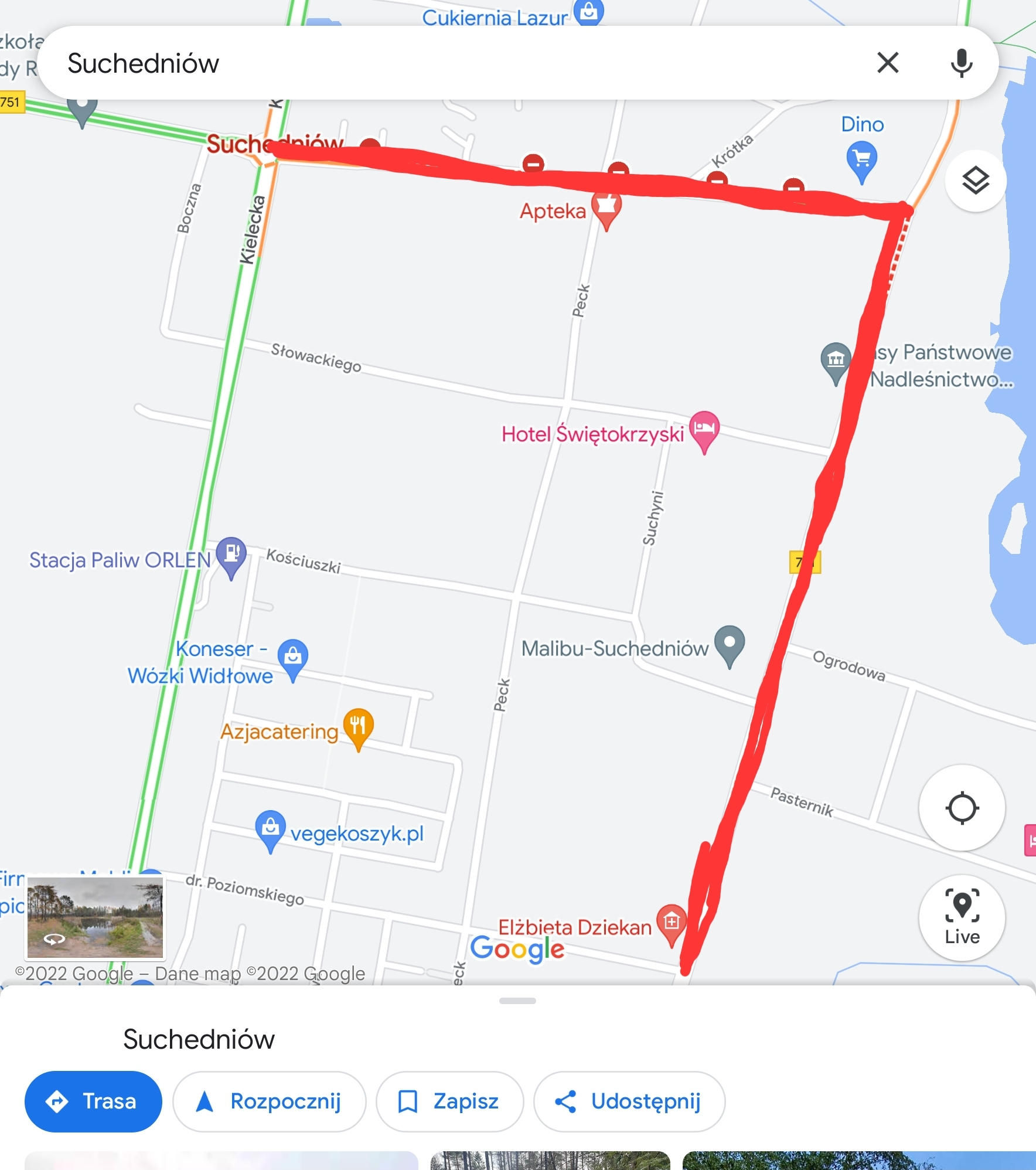 Jadący od S7 najlepiej niech kierują się na Stację Orlenu, a potem od niej w dół na kemping.
