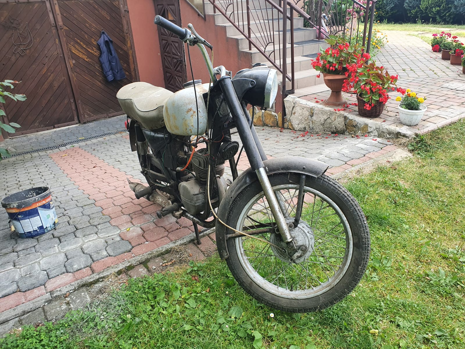 Jakiś czas temu odbudowałem motocykl mz ets250g z 1966r. Nie będę zanudzał zdjęciami detali które trzeba było dorobić, pokaże dwie fotki jak przyjechała (zbiornik już został przezemnie przerobiony na wzór oryginału) i resztę fotek gotowego motocykla.