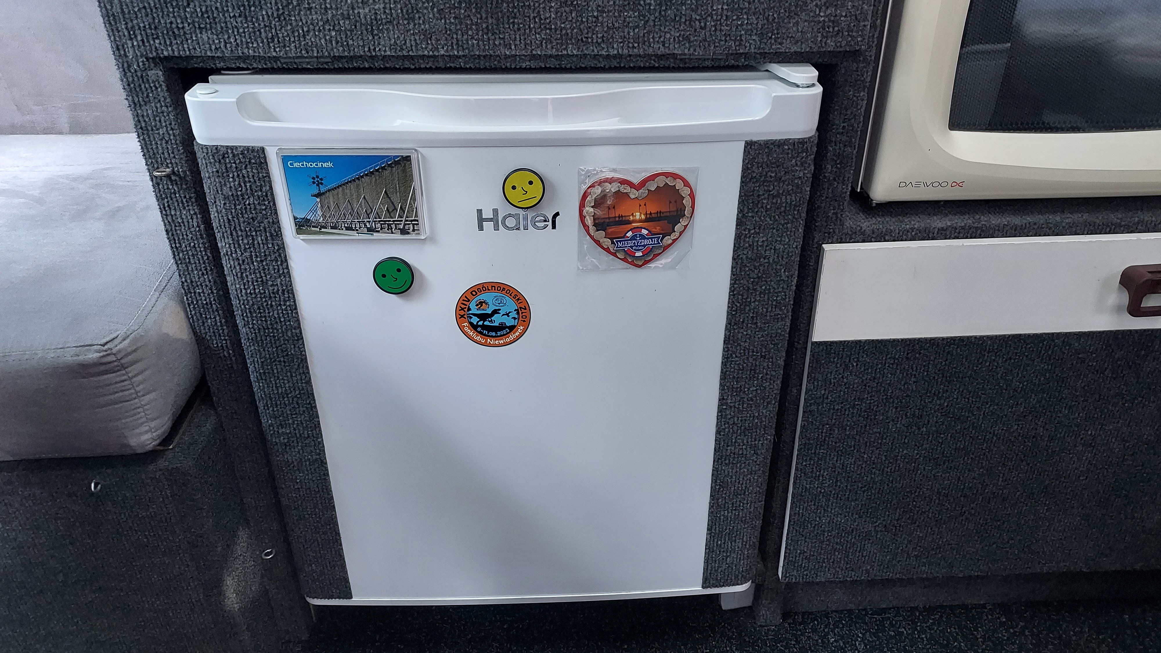 Ponieważ większość mebli w przyczepie jest oklejona remontówką, również i w tym miejscu zastosowałem wykładzinę.