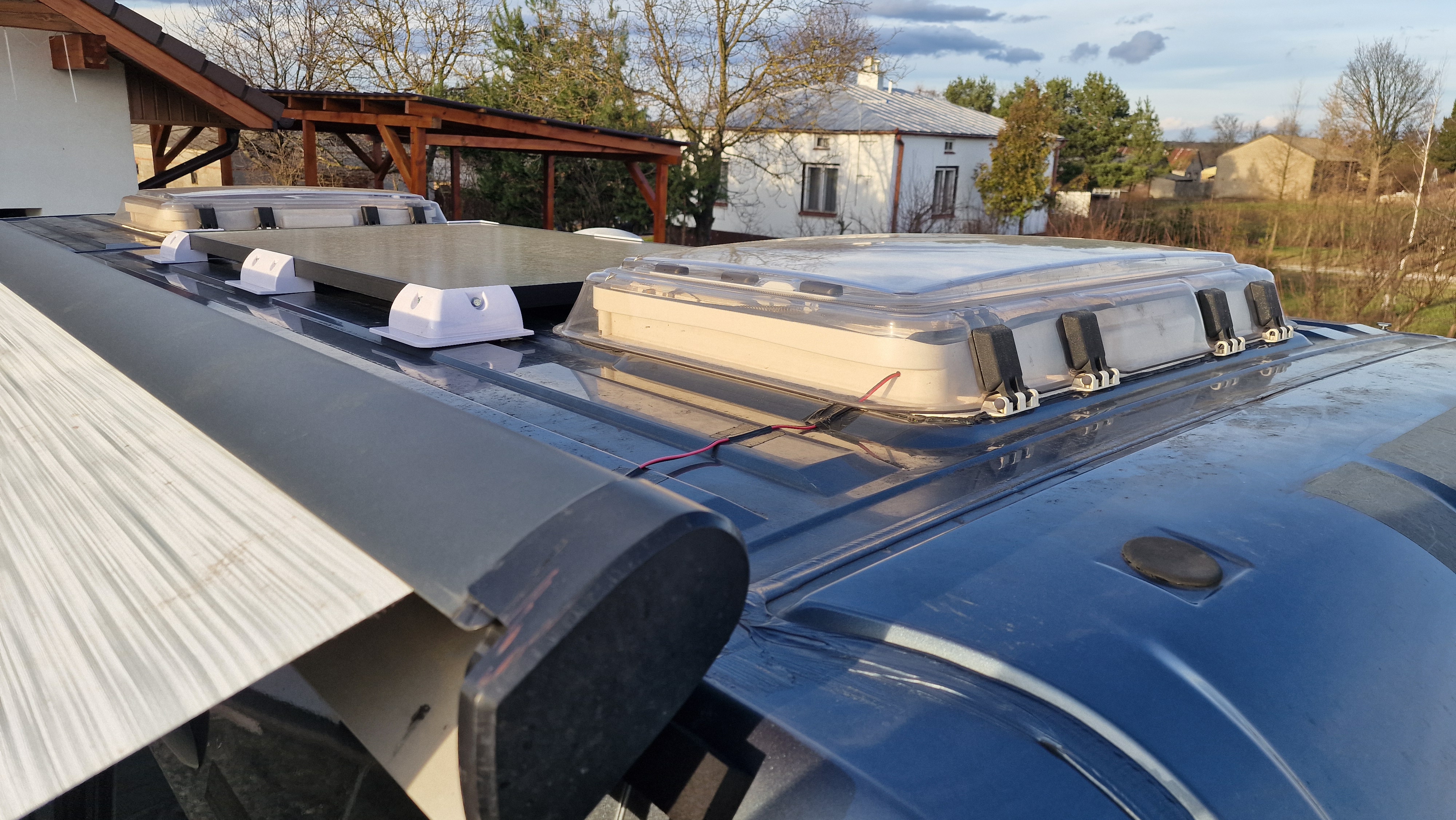 Solar przyklejony jest do dachu poprzez adaptery montażowe.