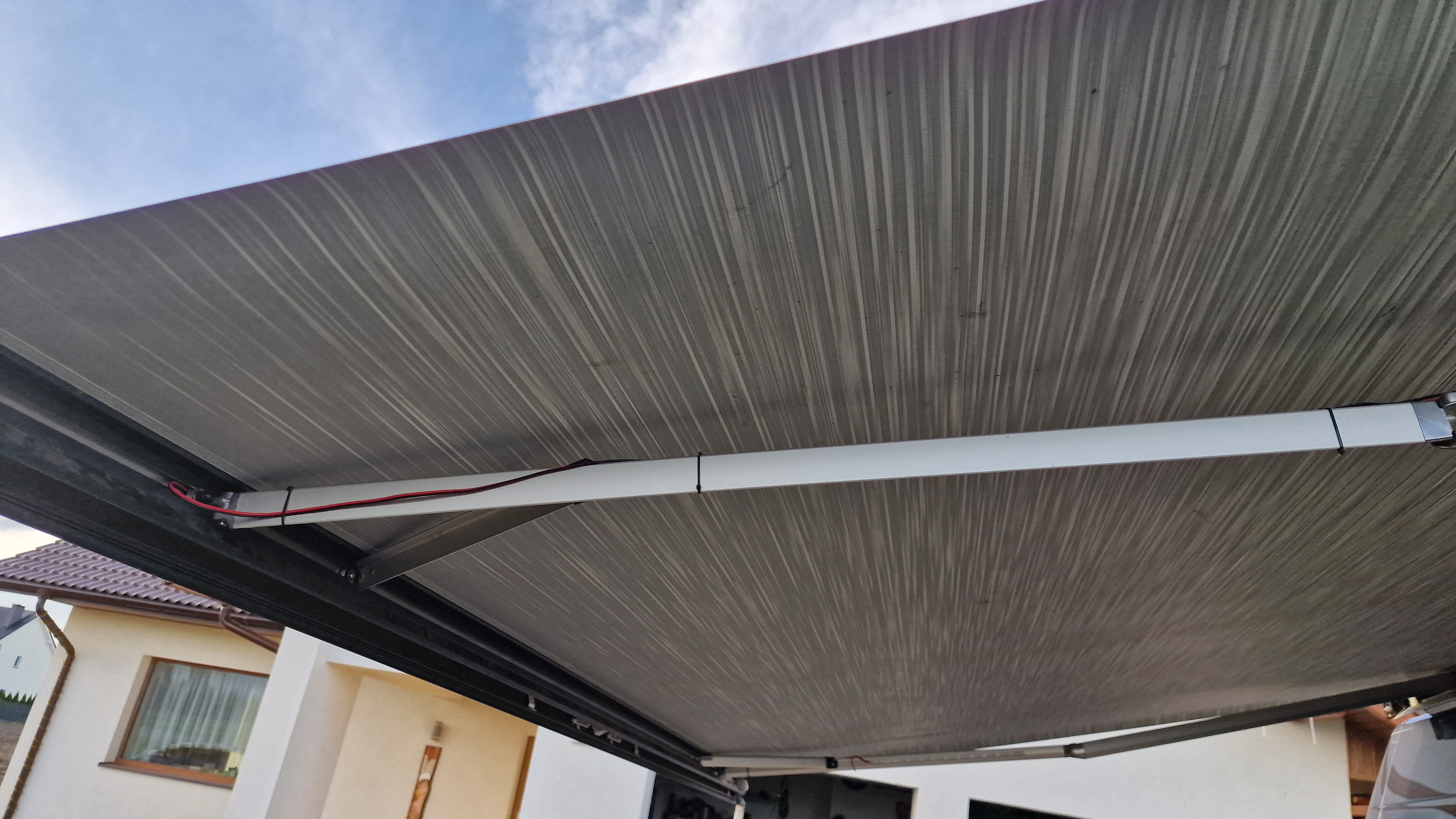U mnie akurat ładnie się wpasowały we wgłębienie w ramieniu markizy. Pomiędzy ramionami zasilanie przechodzi przednim profilem markizy. Niestety wpadłem na to już po przyklejeniu ledów (początkowy plan był na rozprowadzenie górą tak jak poprzednio) przez co nie udało mi się podejść z kabelkami we właściwą stronę i wygląda to bez sensu :)