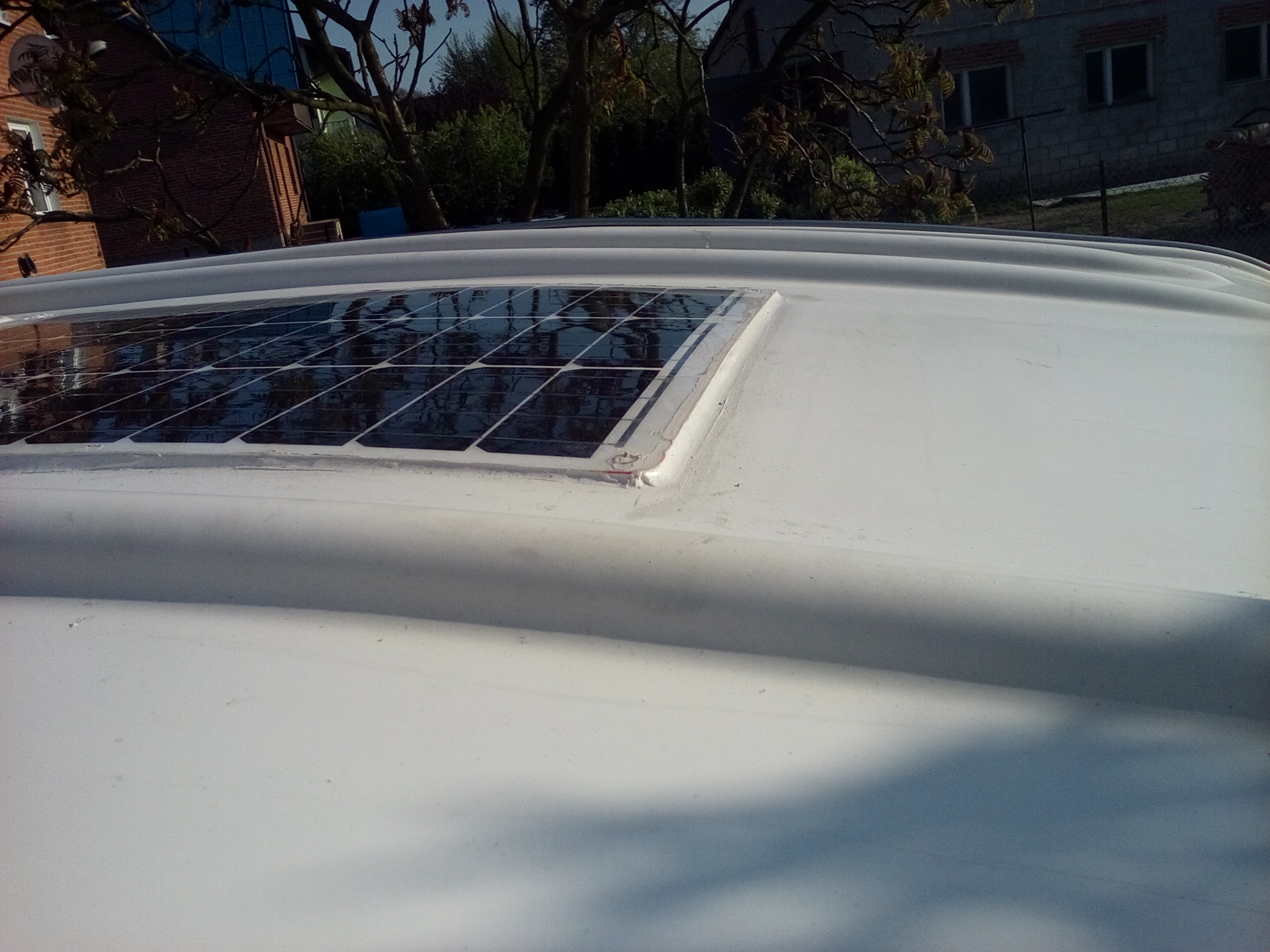 Lada moment wyjazd na majówkę, więc trzeba było zabrać się w końcu za montaż panela, nastąpiła zmiana planów i panel nie będzie montowany na stelażu aluminiowym za wywietrznikiem a został przyklejony bezpośrednio do dachu przed wywietrznikiem dachowym.