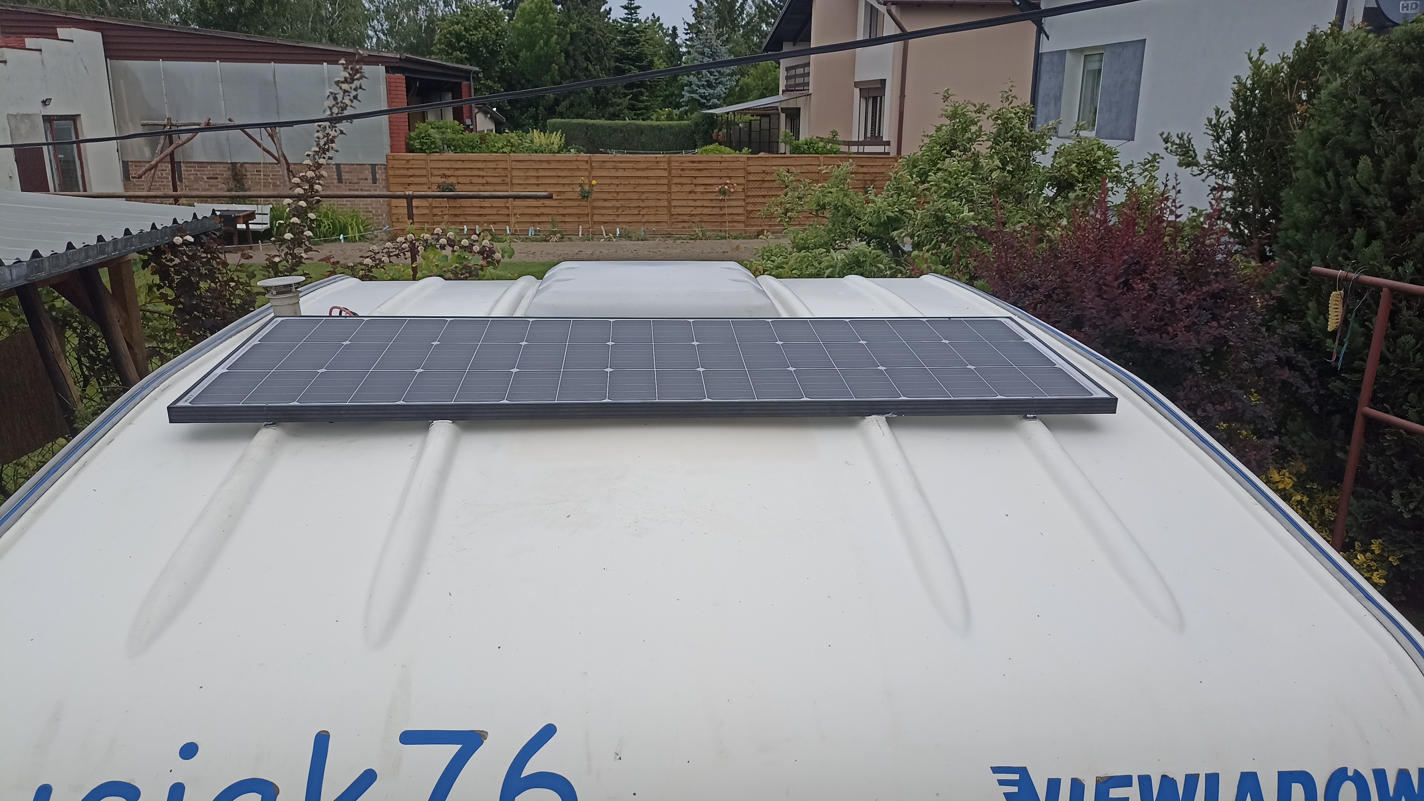 Panel wybrany celowo taki, by w pojedynce działał jak dwa panele w szeregu 12V i ewentualnie w przyszłości można rozbudować instalację gdyby była taka potrzeba do 500W, bo prądowo akurat trzy takie panele obsłuży mi Victron 100/20, a i na dachu enki wchodzą dwa takie panele z przodu przed oknem dachowym i jeden za oknem dachowym (panele te są w sprzedaży od dawna jako standard i nie zanosi się by zniknęły z rynku - to też było dla mnie atutem)
