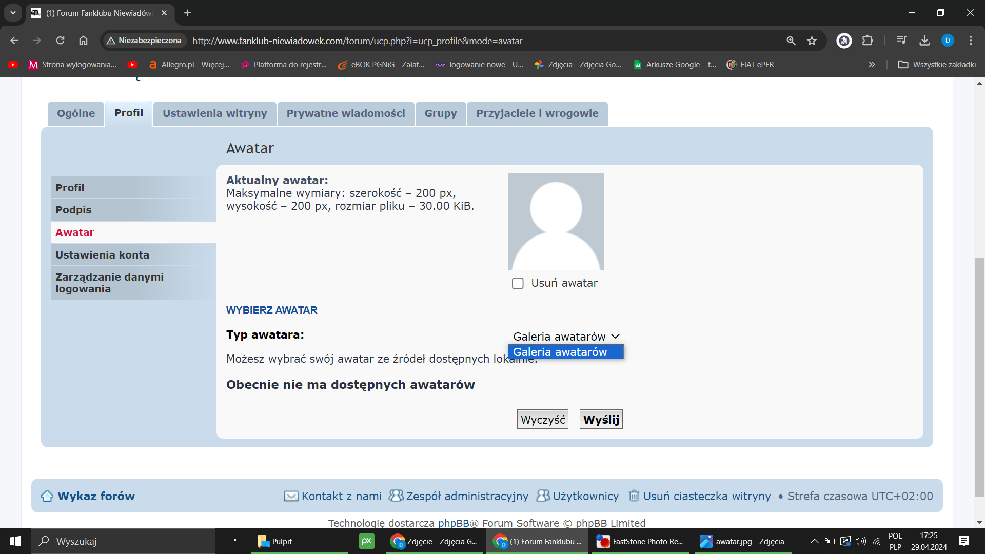 Niestety, dodanie avataru żąda ode mnie linku zewnętrznego, nie chce mi się obrazek zaczytać z kompa, dla tego też wykombinowałem sobie, że dodam go tutaj i pobiorę link.