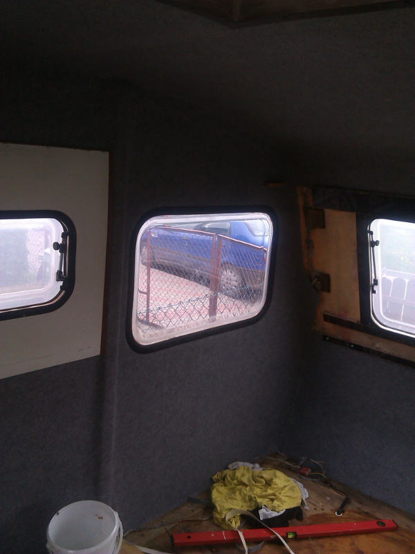 Kolejny weekend za nami. W końcu trochę lepiej zaczyna to wyglądać. Założony plan został w 100% wykonany. Cała buda jest już oklejona wykładziną. Od jutra zaczynam walkę z renowacją mebelków. Każda ze ścian była klejona z dwóch kawałków. Myślę sobie teraz, że spokojnie można próbować kleić z jednego. Z pewnością będzie to bardziej skomplikowane ale da się.