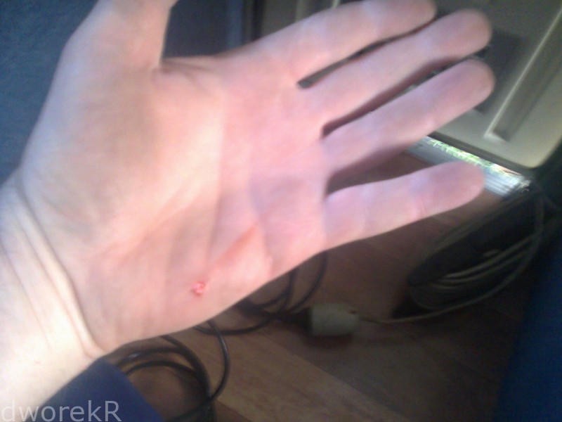 straty: rana dłoni (do wesela się zagoi) ...