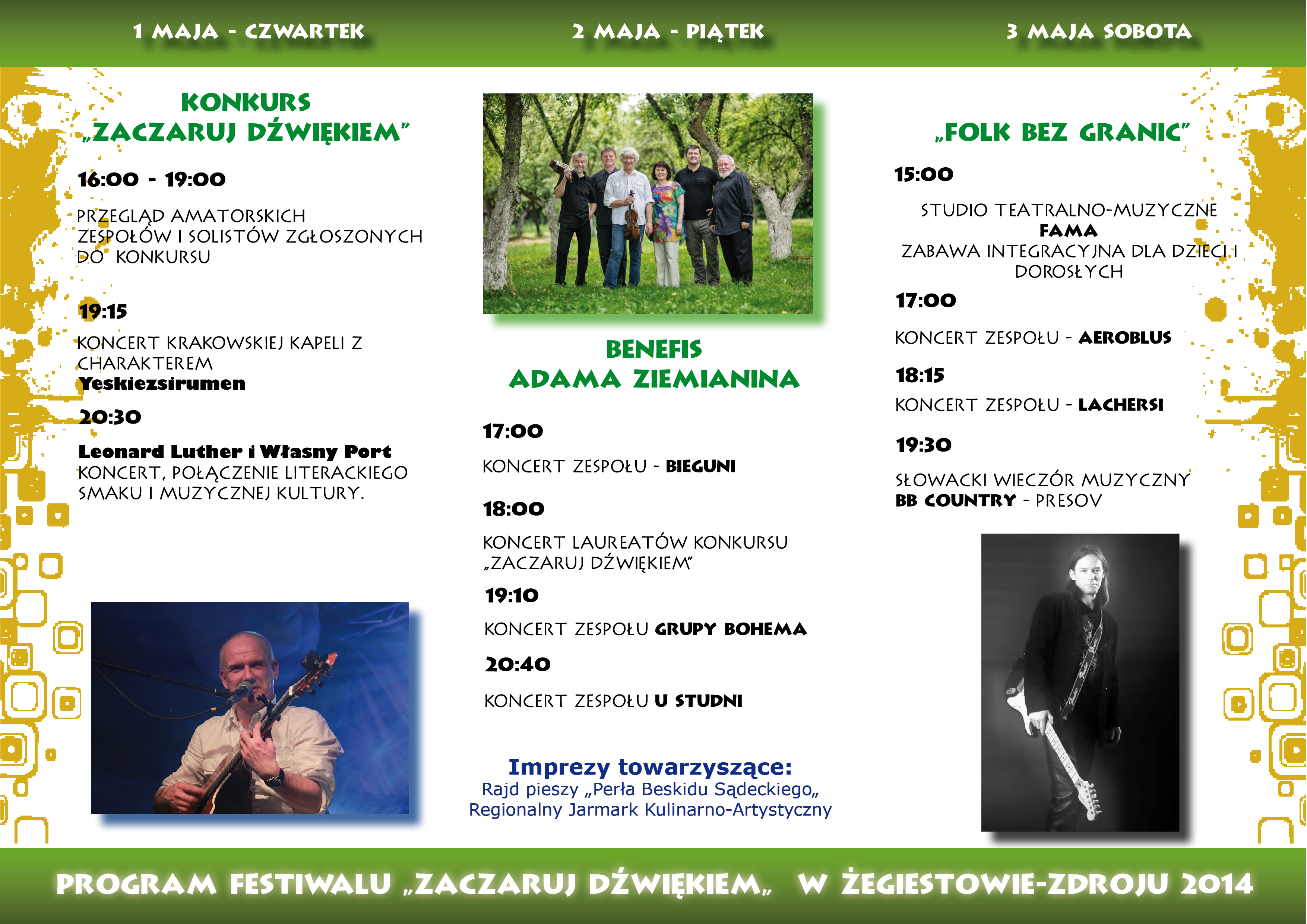 Towarzystwo Przyjaciół Żegiestowa w dniach 1-3 maja 2014 r. organizuje imprezę pod tytułem ZACZARUJ DŹWIĘKIEM. Więcej na stronie http://www.zaczarujdzwiekiem.pl