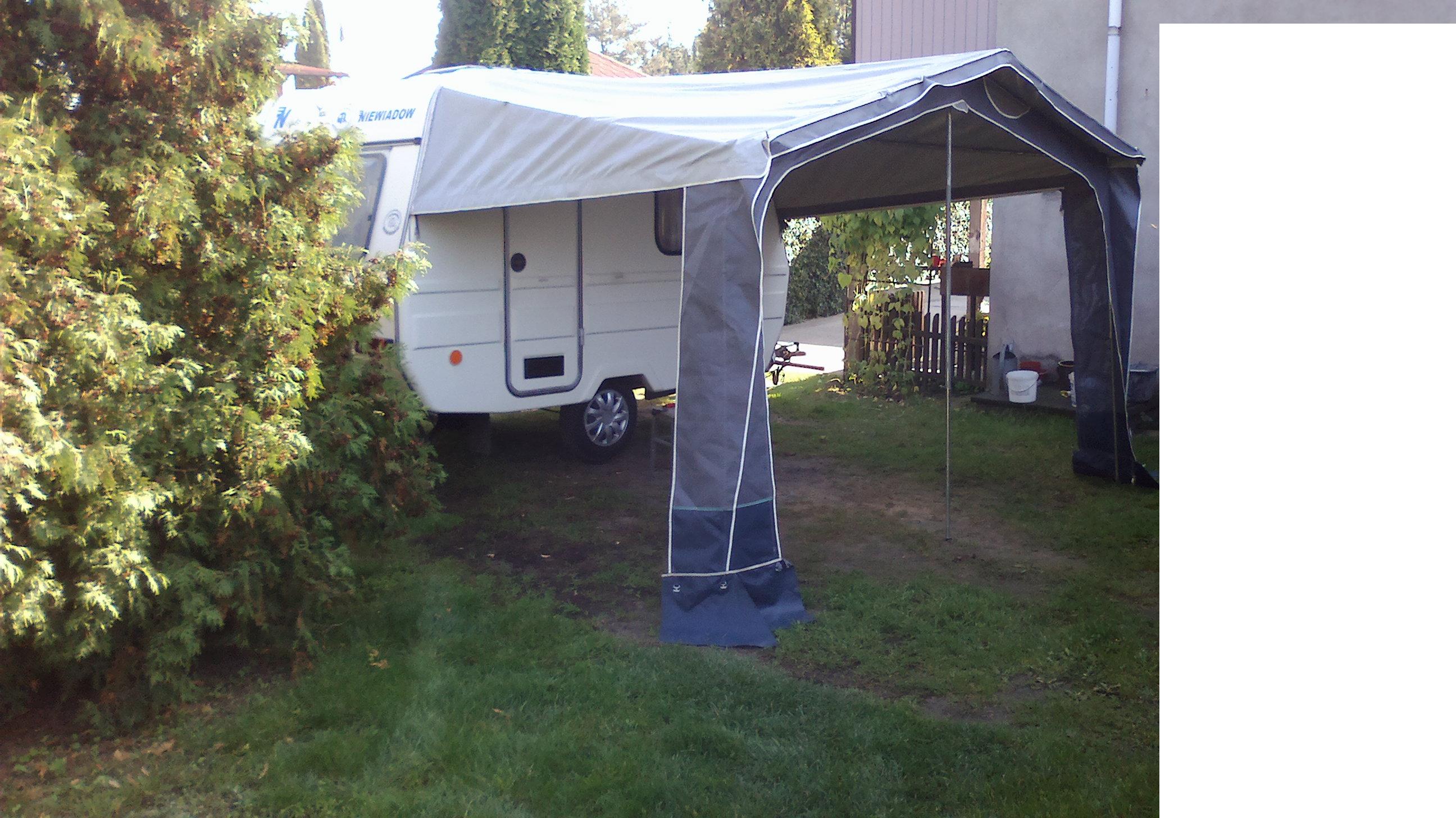 Zastanów się dobrze. Materiał od przedsionka nie musi leżeć na rurkach i u mnie raczej nie będzie. Materiał sam nabierze odpowiedniego kształtu jak się go rurkami porządnie naciągnie. Poza tym przykręcić uchwyty i haki zawsze zdążę. Na szczęście nie jest to jakaś rujnująca inwestycja.