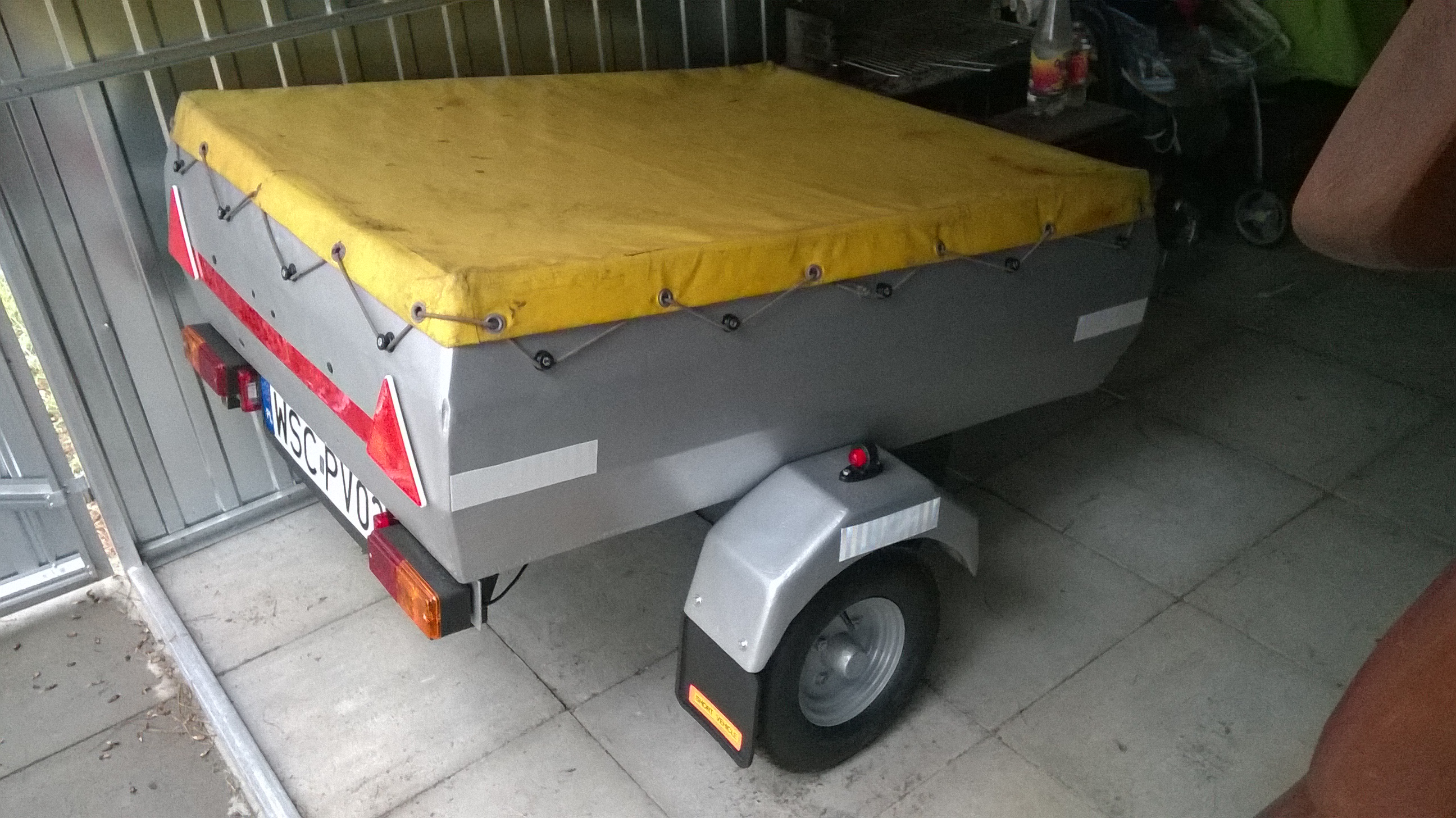 Tomtoy, to jest taka przyczepa z blaszaną pokrywą typ HP 401 i błotniki półokrągłe rok 1988 może w nowszych modelach były te z foto