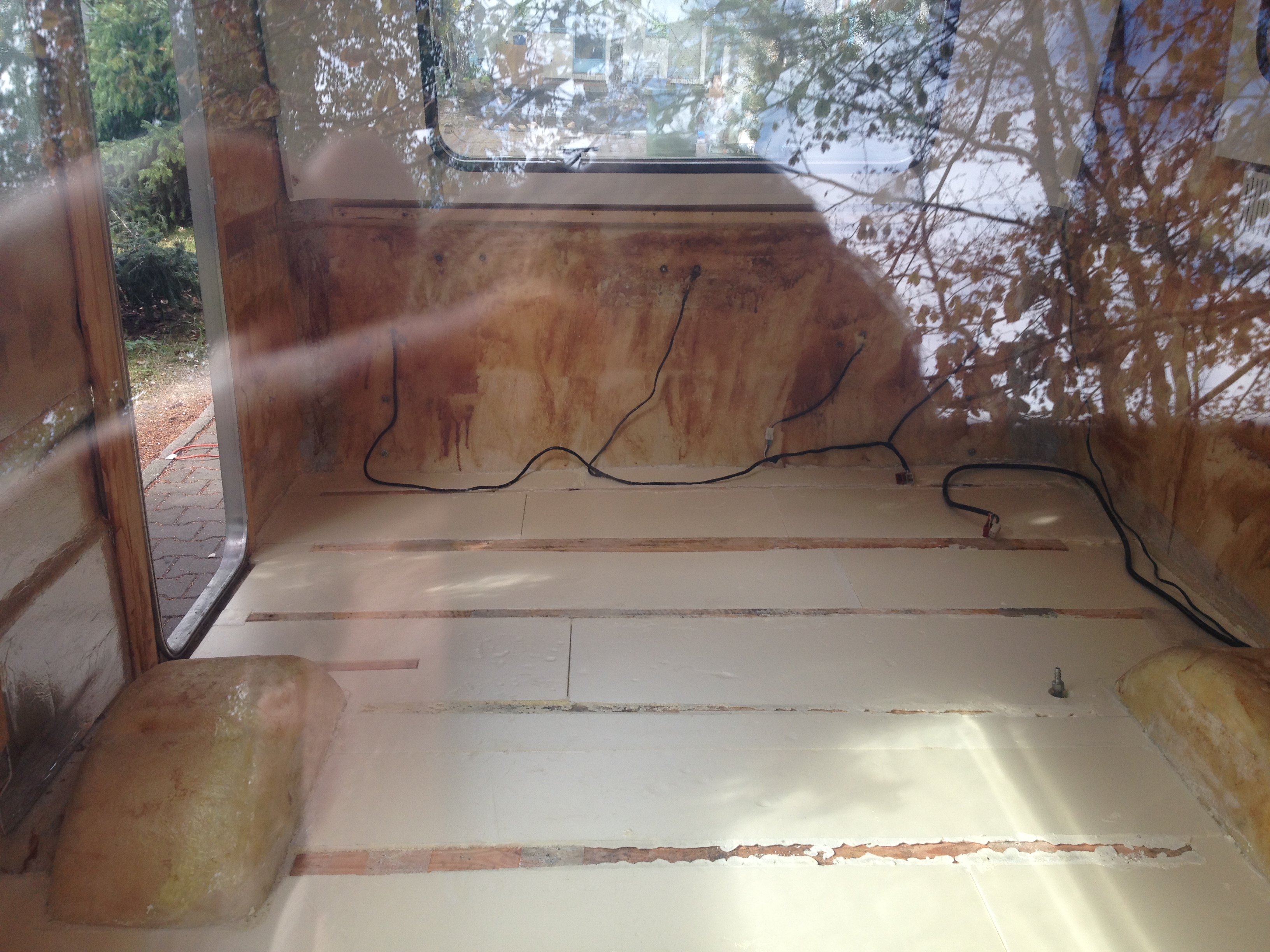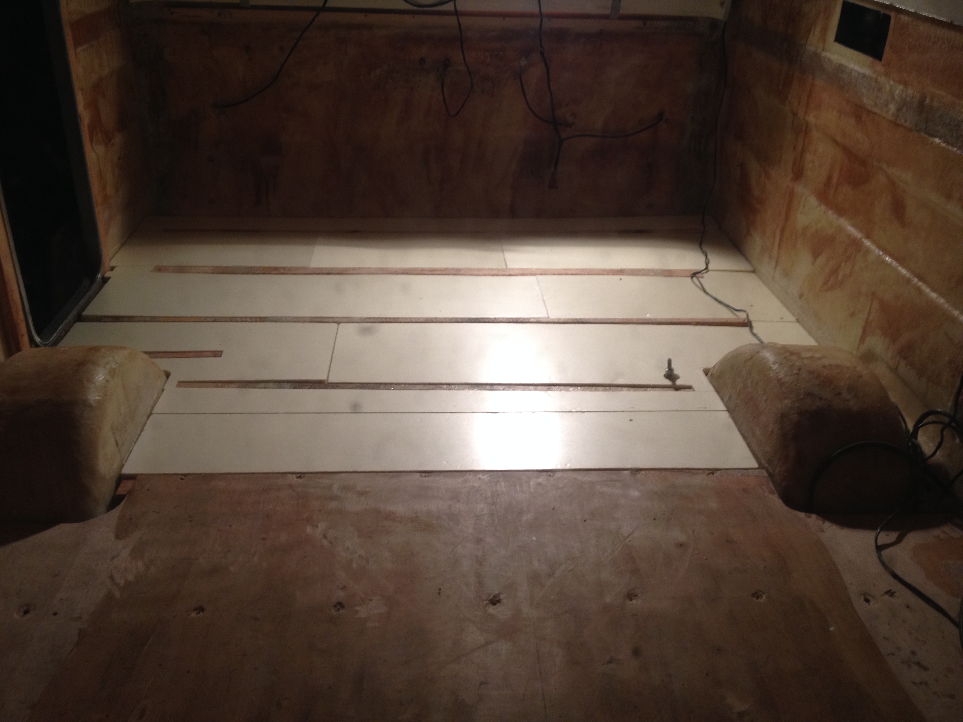 Patrzę na zdjęcia podłogi i wydaje mi się, że jeśli zamontuję palnik od strony dużego łóżka, to i tak jest szansa, że naruszę listwę pod podłogą biegnącą pomiędzy nadkolami, bliżej dużego łóżka. N