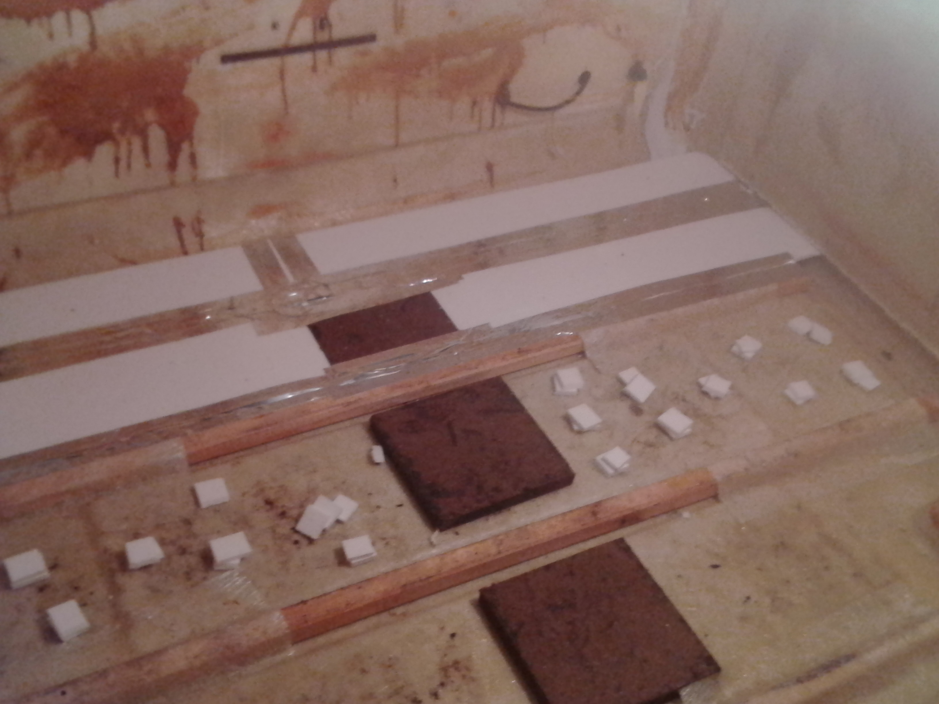 Płyta podłogowa "od spodu" oklejona folią nrc. Użyty klej: Dragon polimerowy.