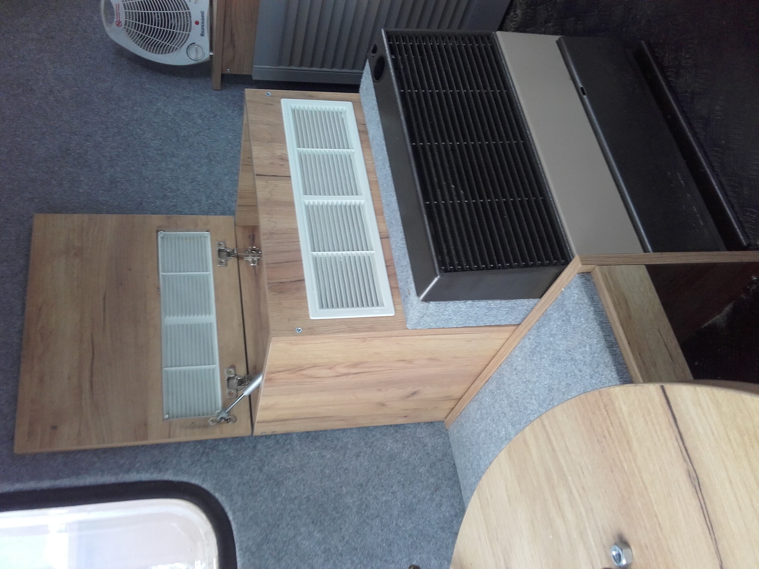 Lecimy ku końcowi remontu. Na lewym nadkolu szafka w ktorej bedzie lodowka przenosna w czasie kiedy nie bedziemy uzywac piecyka a przy niskich temp. wyrzucamy ja przed przyczepe. Na szafce zabudowany carver. Między szafkami akurat miejsce na stawianie kibelka (na szczęście jestem szczupły) instalacja czeka jeszcze na reduktory. Zeszło na decyzję o małych butlach które będę sam napelnial z 11tki. Jeśli uda się upchac to w szafce jeszcze zamontuje wentylator do piecyka. Zastanawial sie ktos nad montazem elektrozaworow do gazu zeby nie latac na zewnatrz przyczepy? I zeby to sprzezyc z czujnikiem gazu/czadu aby w razie czego odcinal dopływ?