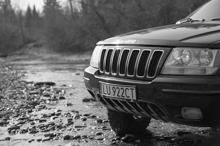 Będąc nad rzeką po wodę nie mogłem się powstrzymać i wsadziłem do niej Jeepa