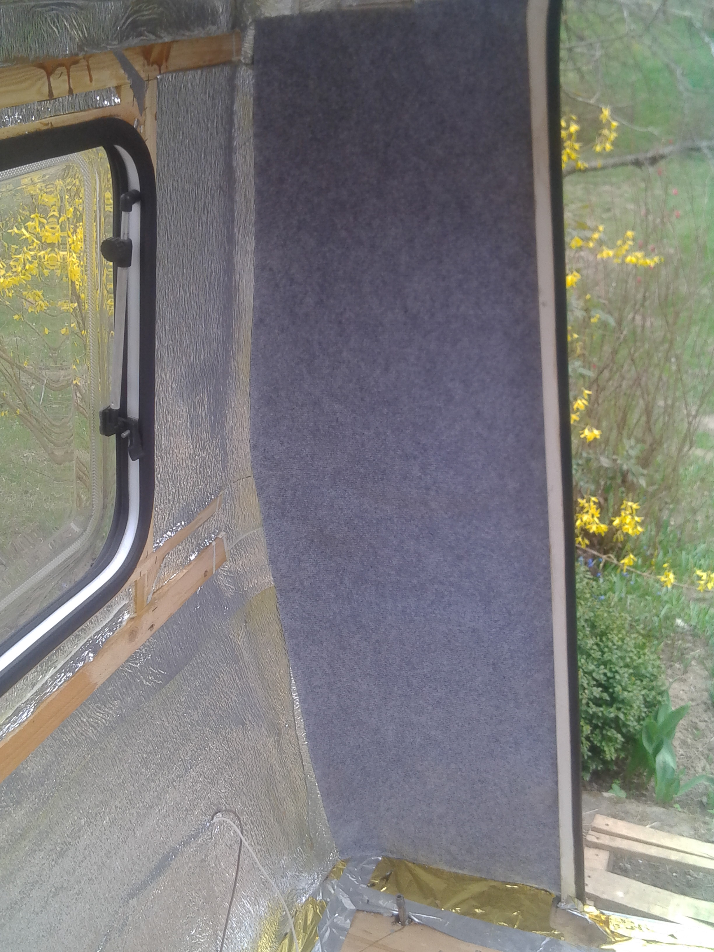 W ogóle jeśli chodzi o okna przednie i tylne to zmieniłem trochę swój pierwotny plan - zamierzałem po wywaleniu białych płyt kłaść remontówkę na zaizolowane pianką ściany, ale nie udało mi się sensownie i w miarę równo wyrównać przestrzeni wokół okien pianką - z racji obecności listew, przetłoczeń z boku itd. Boję się, że po położeniu wykładziny będzie to wyglądać masakrycznie. Stąd decyzja, że płyty zostaną jednak zamontowane (nowe), ale na nie po ich zamontowaniu pójdzie i tak remontówka (wiem wiem, część z Was to rozwiązanie odradzała, decyzja po mojej stronie jest jaka jest :) ). Dzięki temu, będzie równiutko i bez jakiegoś masakrycznego rzeźbienia.