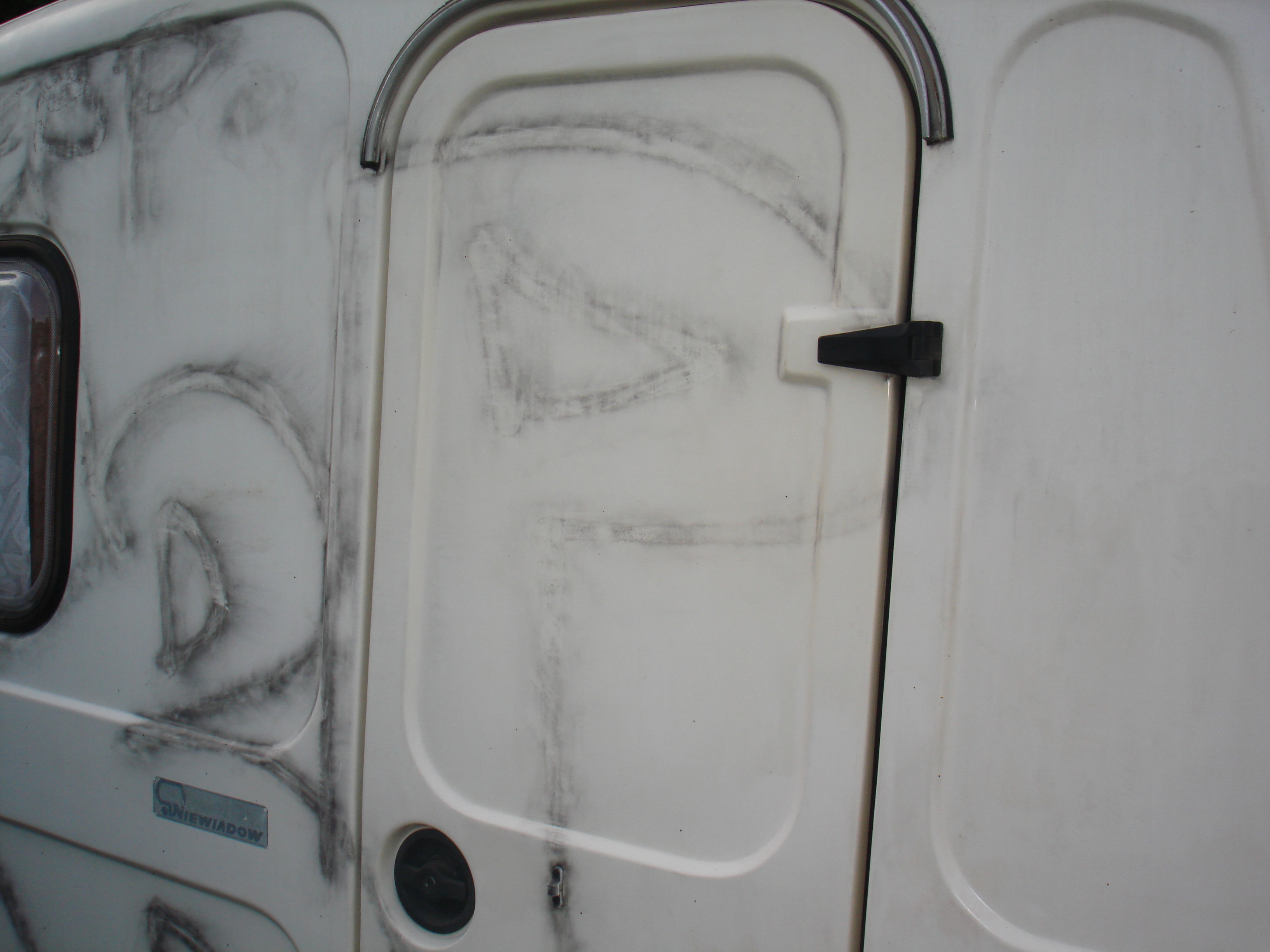 Boguś odpisałem Ci na Karawaningu ......Wodnikowi tak pomalowali przyczepę w Krakowie , do zmycia napisów kupił płyn do usuwania graffiti i bardzo fajnie wszystko zeszło .Nie używaj żadnej pasty ściernej tak jak ktoś Ci podpowiadał bo porysujesz laminat a napisy i tak zostaną .