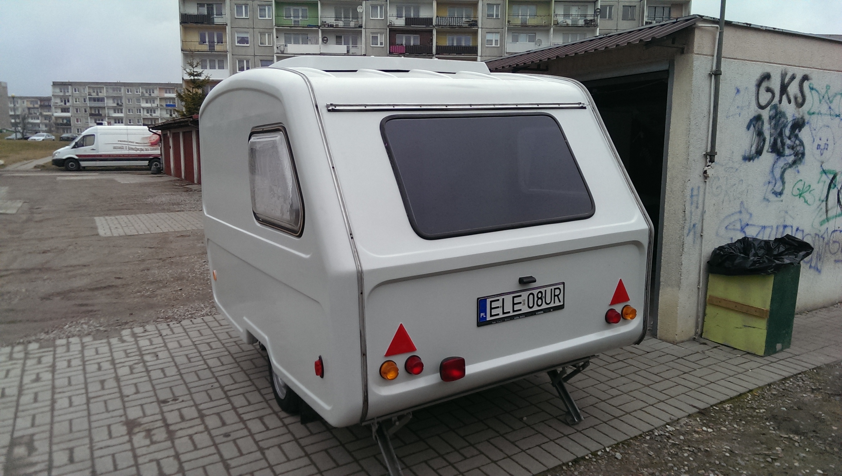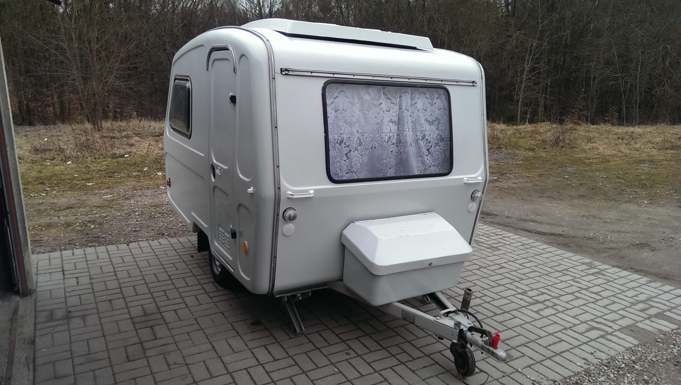 To był naprawdę - muszę to tak napisać ZAJEBISTY dzień - już jakiś czas temu po ogłoszeniu mojej namiotówki SKIF na sprzedaż zgłosił się jeden klient z chęcią zamiany. Wysłał kilka mało konkretnych fotek swojej Niewiadówki - pisze mało konkretnych - bo przyczepa ta stała w jakiejś zaciemnionej stodole - to akurat dobrze - bo sucho - i były kiepskiej jakości. Trudno zaryzykowałem i po zimie umówiłem sie na przyjazd po nią, Ten kemping stał tam przez dwa lata nie ruszany. Poprzedni właściciel kupił ją podobno w takim stanie i nic przy niej nie robił. Nie chce mi się w to za bardzo wierzyć - a już wyjaśniam dlaczego. Środka właściwie nie ma - z tego się cieszę - bo chcę go zrobić po swojemu - ale ma odnowioną wymalowaną ramę, w środku nowe panele podłogowe - nowa tapicerka na ścianach. Przyczepa była "lekko" przykurzona po dwóch latach. Po umyciu okazało się, że: wszystkie odblaski i lampki są NOWE a przyczepa została cała pomalowana- odświeżona i zaczęła błyszczeć jak nowa. Jedyny minus to że szyby nie są otwierane - a ta duża z tyłu to zwykła szklana szyba w uszczelce i lekko przecieka. No ale to się wymieni na otwieraną Ogólnie stan przyczepy wskazuje na to iż ktoś się podjął odbudowy i skończył na etapie dla mnie zupełnie niezrozumiałym. To co teraz zostało dla mnie to czysta przyjemność