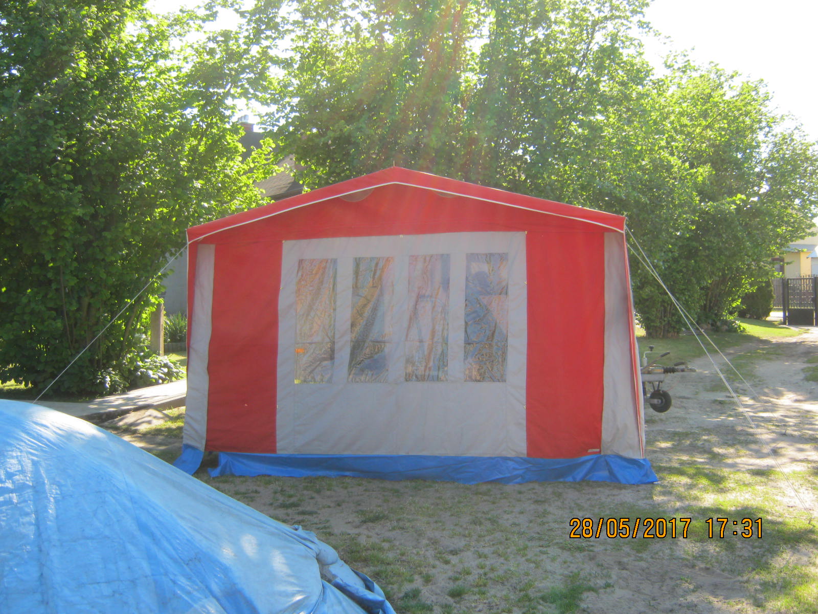 Następny drobny zakup adapter z wtyczką i gniazdem bardzo fajne rozwiązanie,no i pierwsze rozłożenie namiotu od chwili kiedy kupiliśmy przyczepę