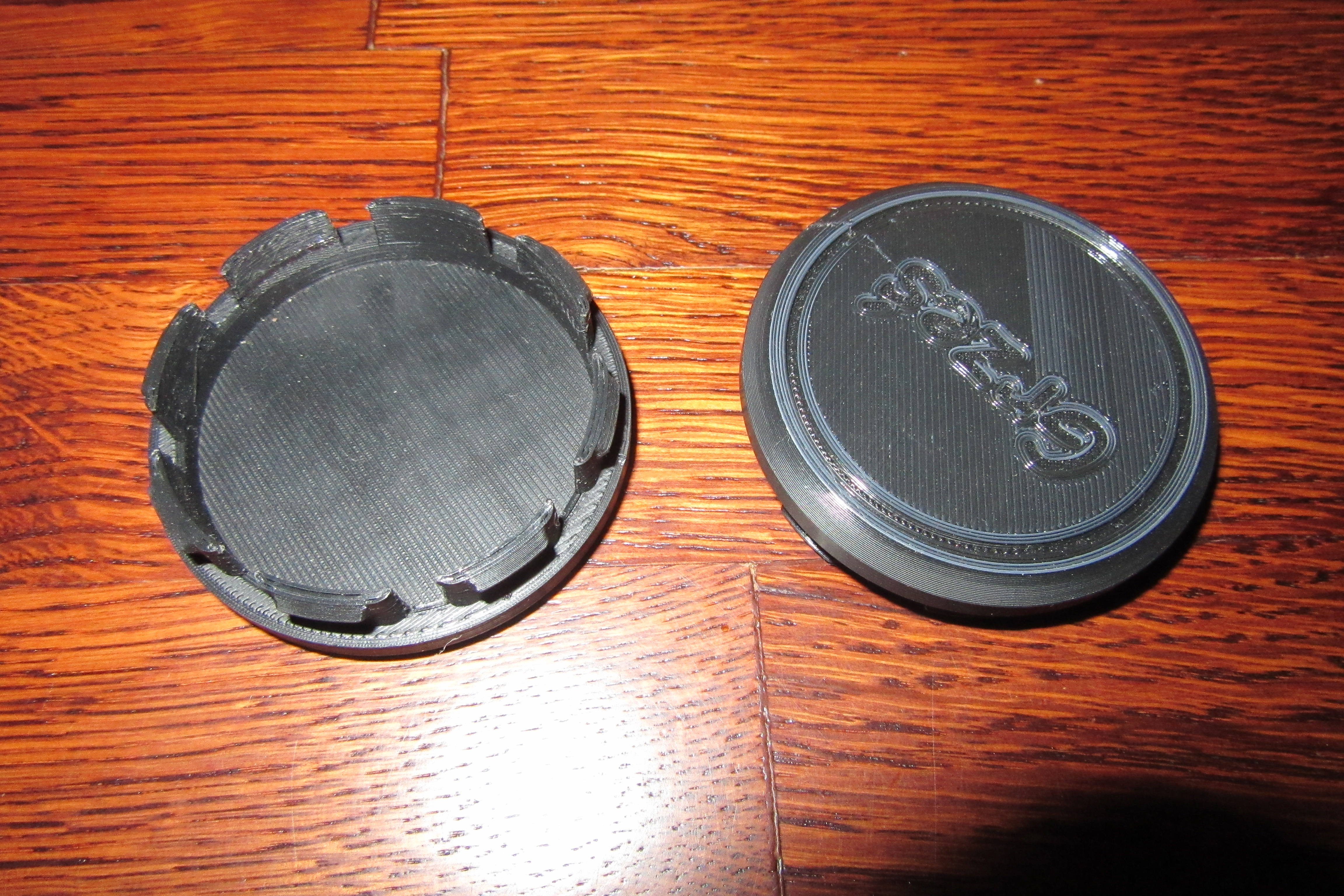 Przyczepa z 2005r. Z zeszłym roku do enki zamontowane zostały felgi aluminiowe rodem z poloneza. Niestety zostały nabyte bez dekielków - temat ogarnięty dzięki uprzejmości znajomej "złotej rączki". Wydrukowana na drukarce 3D:
