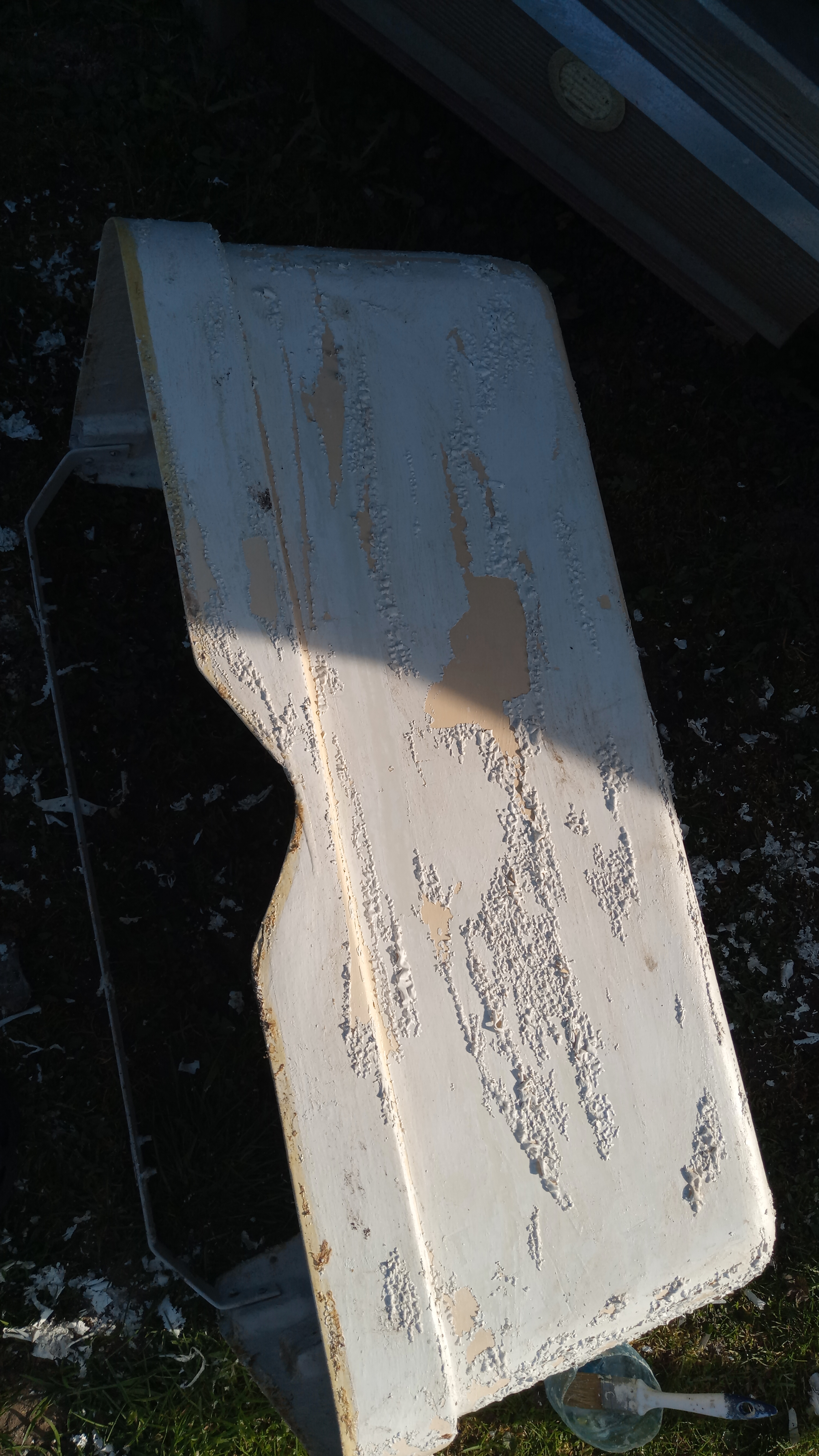 Plan na dziś - dokończyć usuwać starą farbę i wyrównać łączenia laminatu.