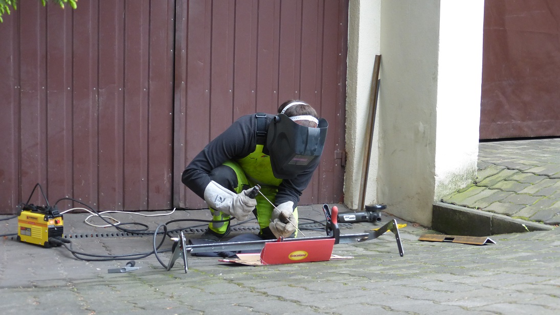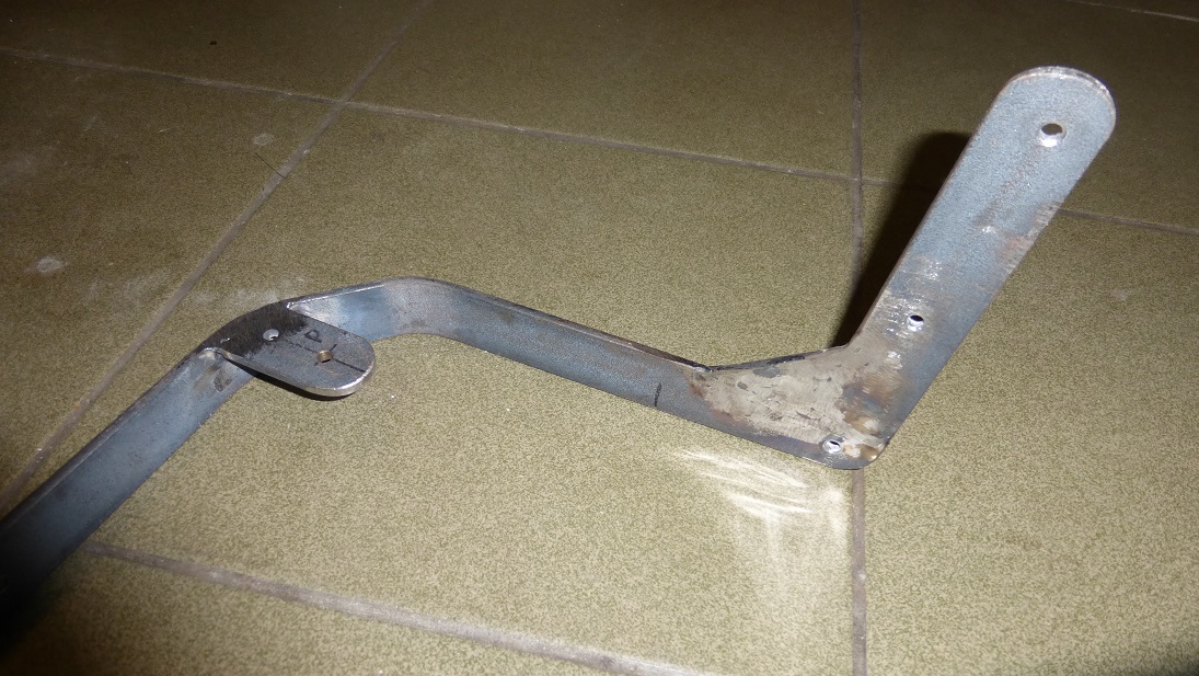 Do zbyt wiotkiego pałąka trzeba było dospawać wzmocnienie z identycznego płaskownika, tworzące razem kątownik. Ogromnie usztywniło to podstawę zawiasów.