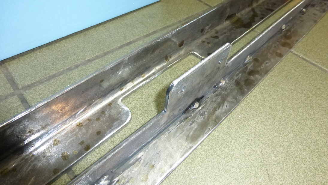 Fotki gdy już jest machnięty podkładem, nie cyknąłem przy robocie. Nie jestem zadowolony ze swoich spawów, coś mi dziurawe wyszły ale to moje trzecie czy czwarte spawanie w życiu i zresztą w kufrze nikt tego nie będzie oglądał. Za to na pałąku są niezłe