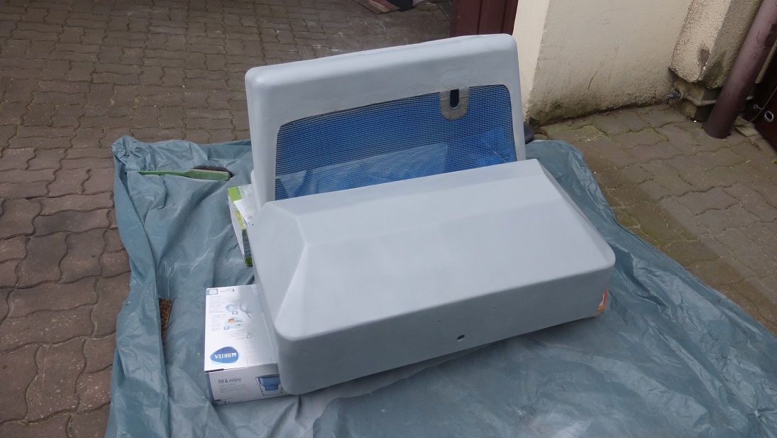 Na koniec wszystko przeleciałem emalią ftalową na popielaty kolor. W podobnym tonie będzie całe pudło, odstąpiłem od klasycznego białego i idę w lekki szary. Jachtowa Oliva już do mnie idzie