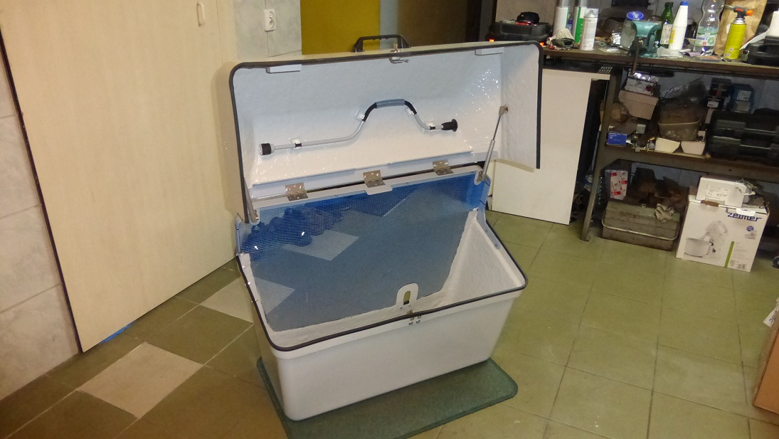 Teleskopy wymienione na 100N, tak jak pisałem wcześniej. Jest też zreanimowana korba do podpór z którą klapa elegancko winduje się do góry. Nareszcie, gotowy kufer wygląda tak: