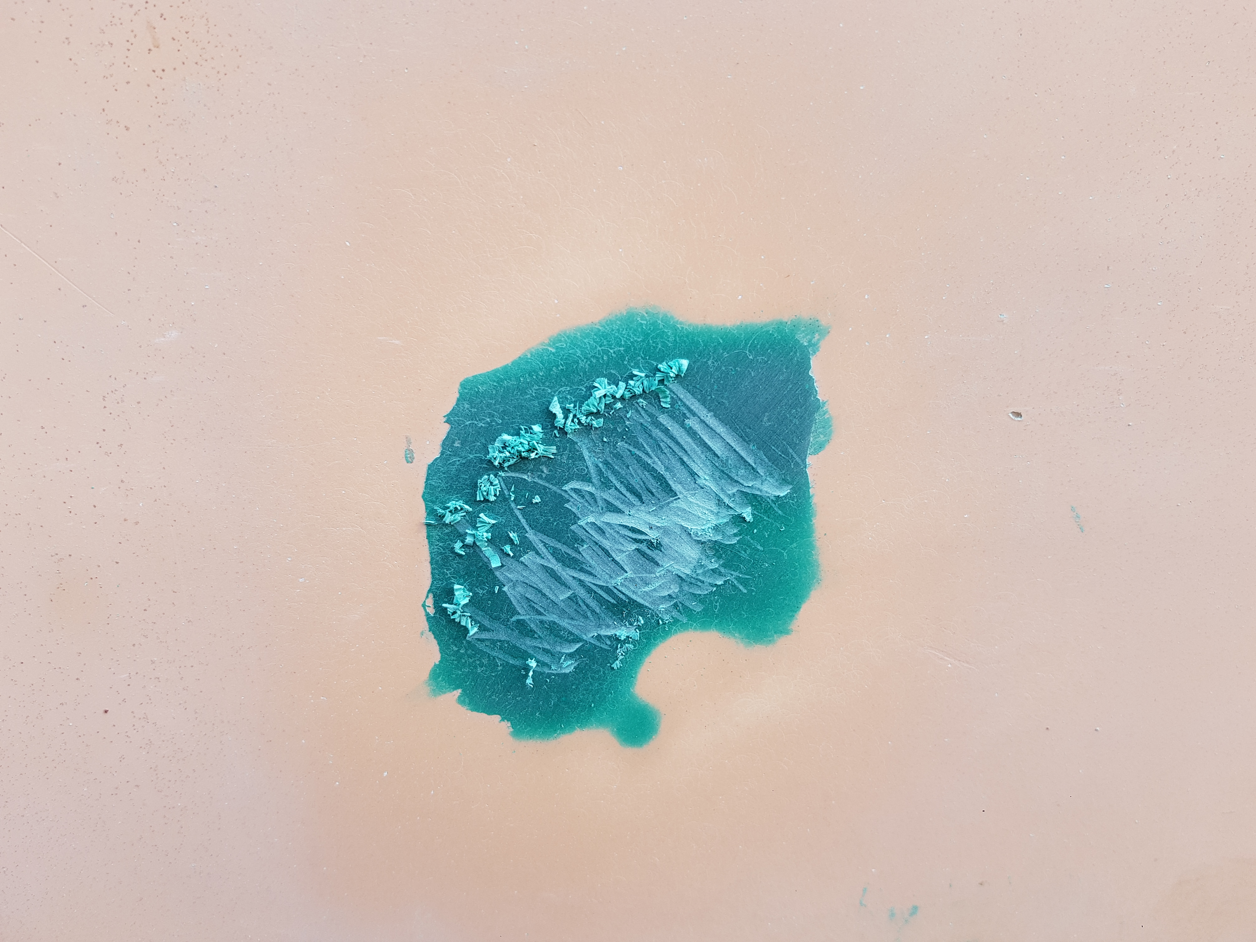 Miejce w którym szpachla podobo wyschła ale twarda.