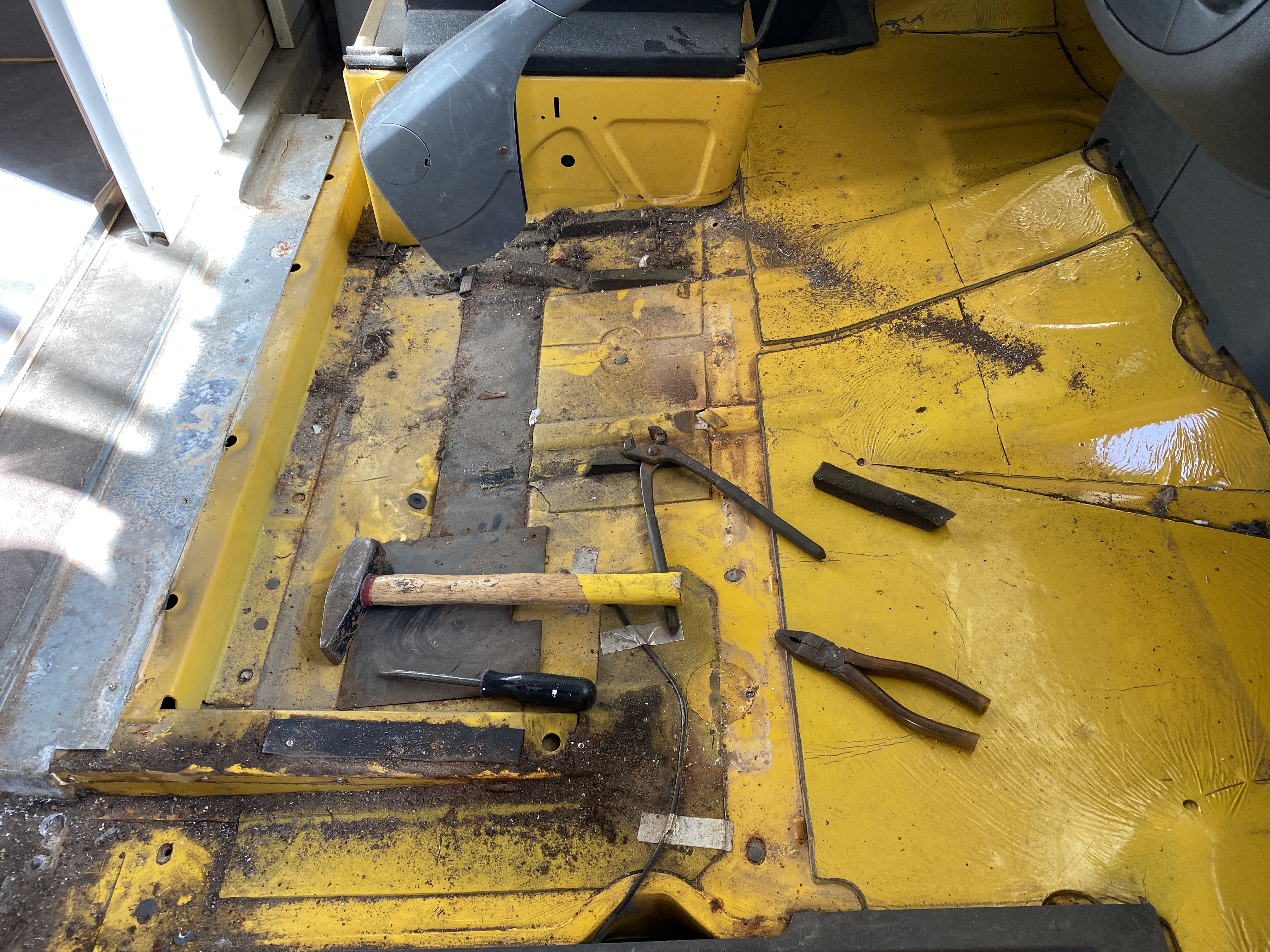 Podłoga szoferki po demontażu wykładziny - na pierwszy rzuk oka wygląda strasznie :)