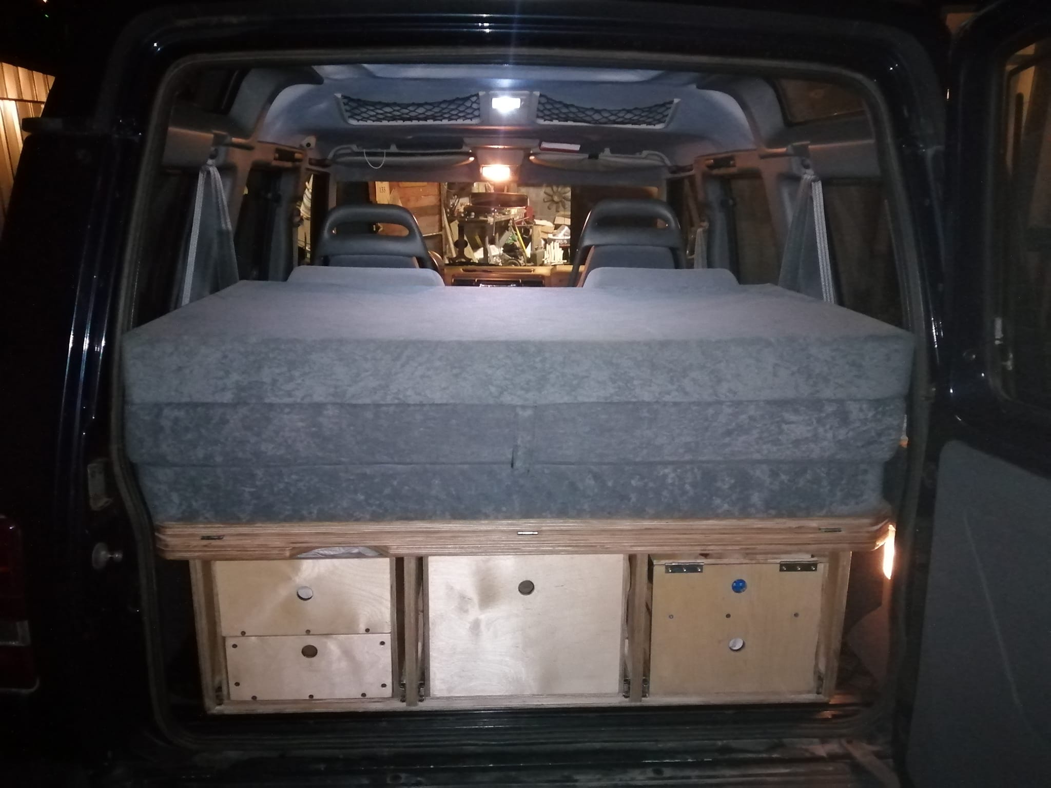 Aby można było się nim nie tylko przemieszczać ale i spać a nawet chwilę pomieszkać, przygotowałem prostą zabudowę typu Camping Box zainspirowaną filmami z YT.