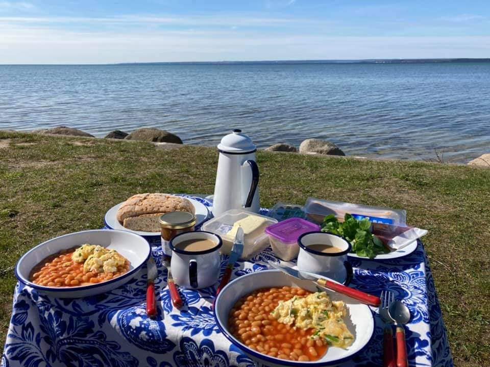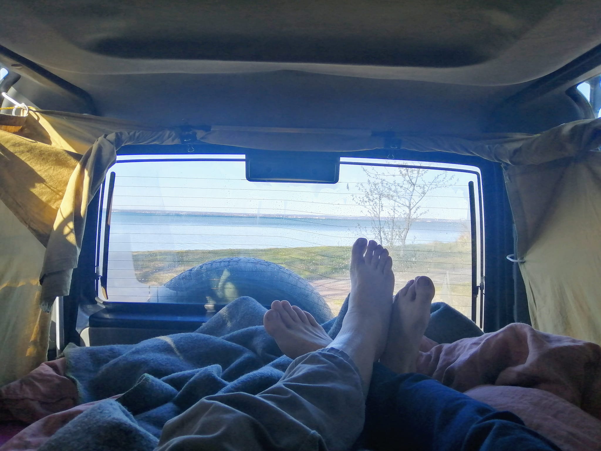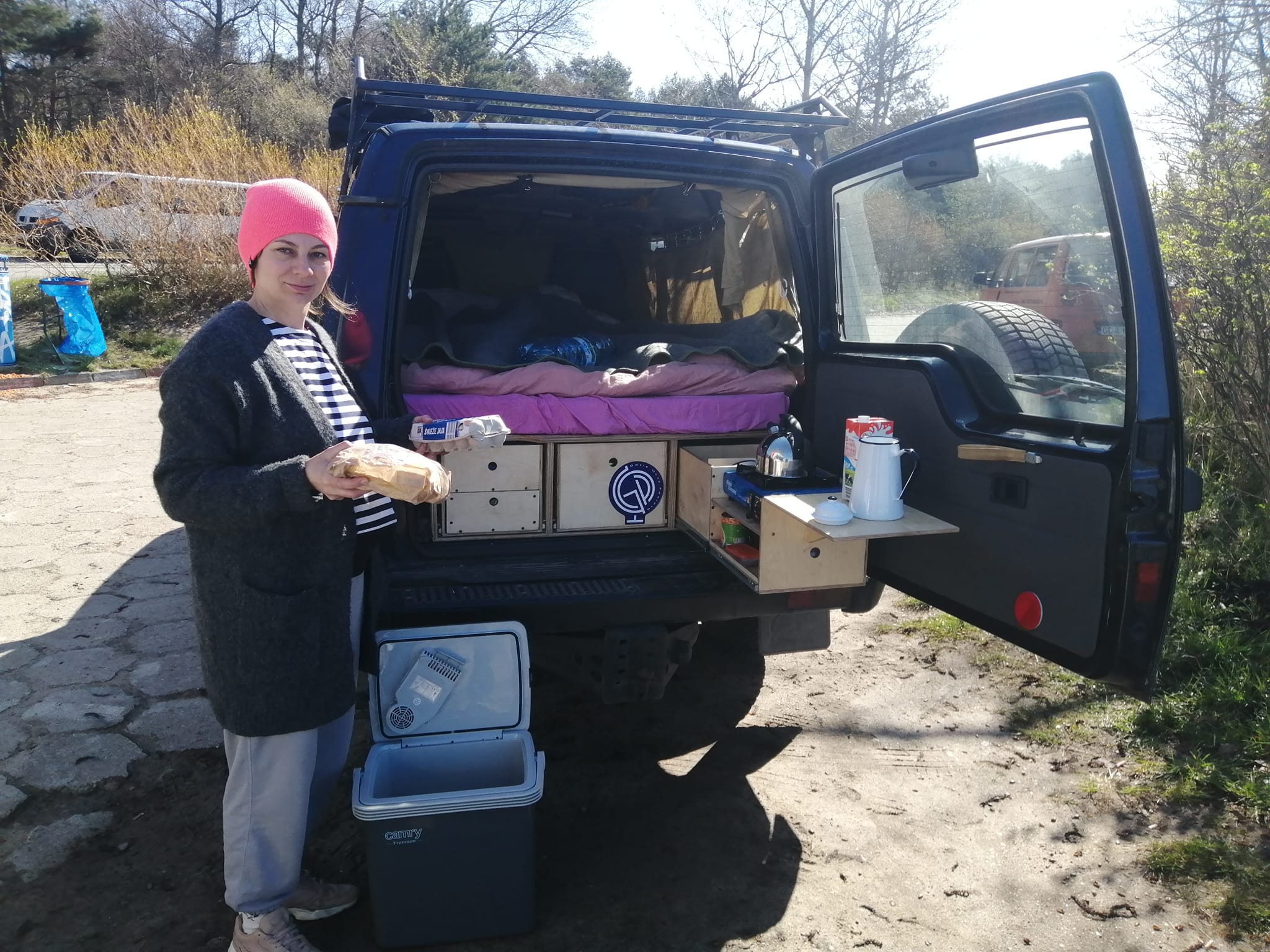 Da się tak podróżować, sprawdziliśmy, można zajechać o północy na parking w Chałupach w 5 minut rozłożyć łóżko a rano obudzić się z widokiem na zatokę nie płacąc za to ani złotówki. A następnie majówkowe śniadanie zjeść w pięknych okolicznościach nad zatoką, następnie zwinąć majdan i pojechać dalej.