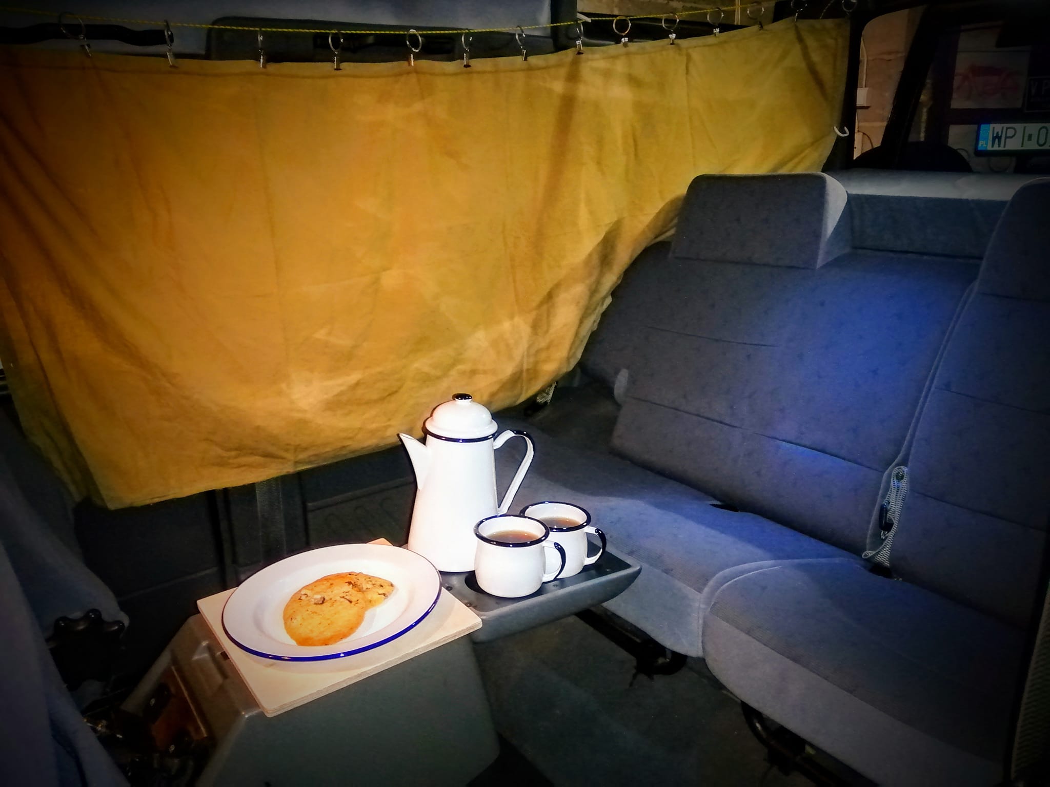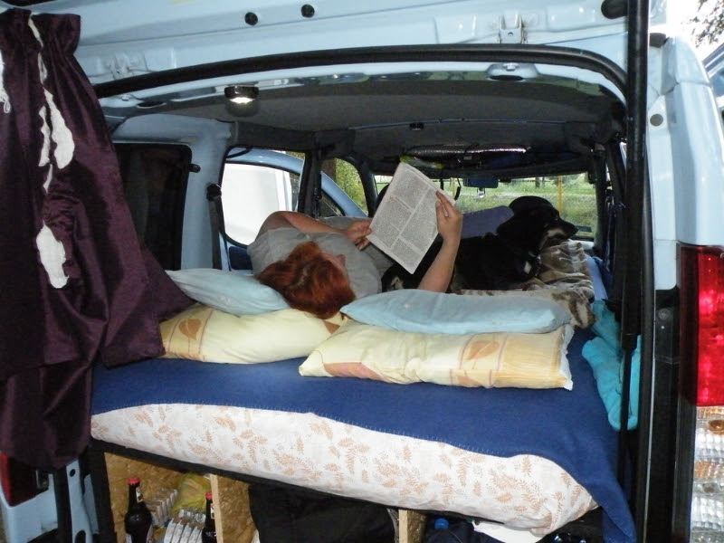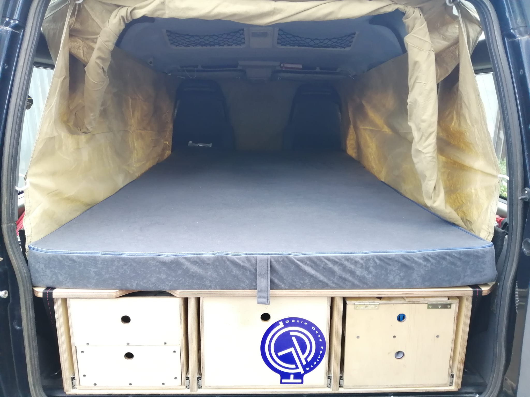Zabudowa jest łatwa w montażu i demontażu, w zaledwie pół godziny samochód codzienny staje się mikro-kamperem, w którym może podróżować 5 osób, a spać mogą 2 osoby ewentualnie + dziecko (małe dziecko i takie nawet posiadamy) ewentualnie + pies (mały pies i takiego również posiadamy ale rośnie i przestanie być mały).
