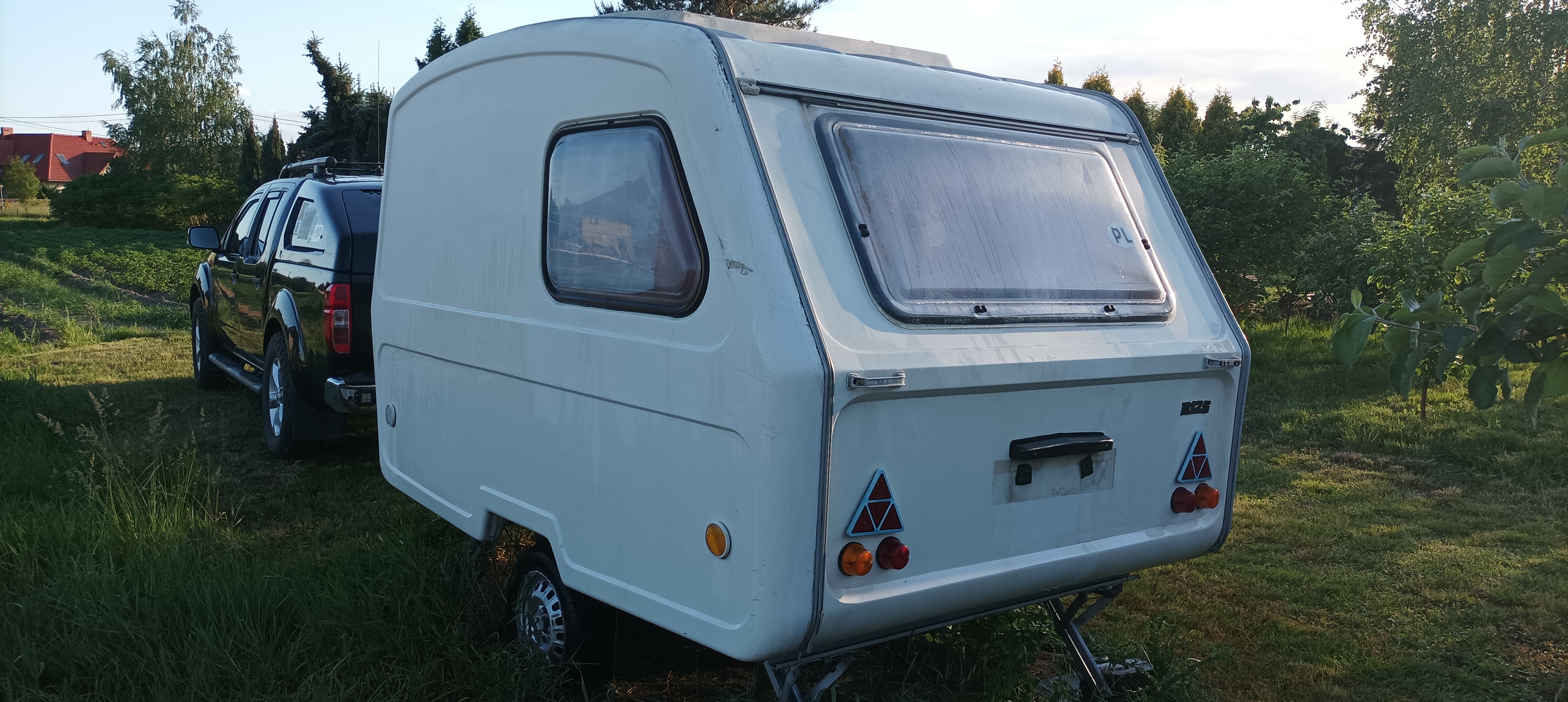 Mam na imię Marek, jestem z Legnicy. Po kilku przebojach stałem się szczęśliwym posiadaczem N126E. Przyczepa ogólnie jest w dobrym stanie, ma oryginalne meble, tapicerkę i pokrowce na materacach. Układ jezdny jest zmodyfikowany, założone są resory i amortyzatory ramieniowe z Warszawy M20. Będę chciał ją tylko odświeżyć i zachować w jak największym stopniu oryginalności.