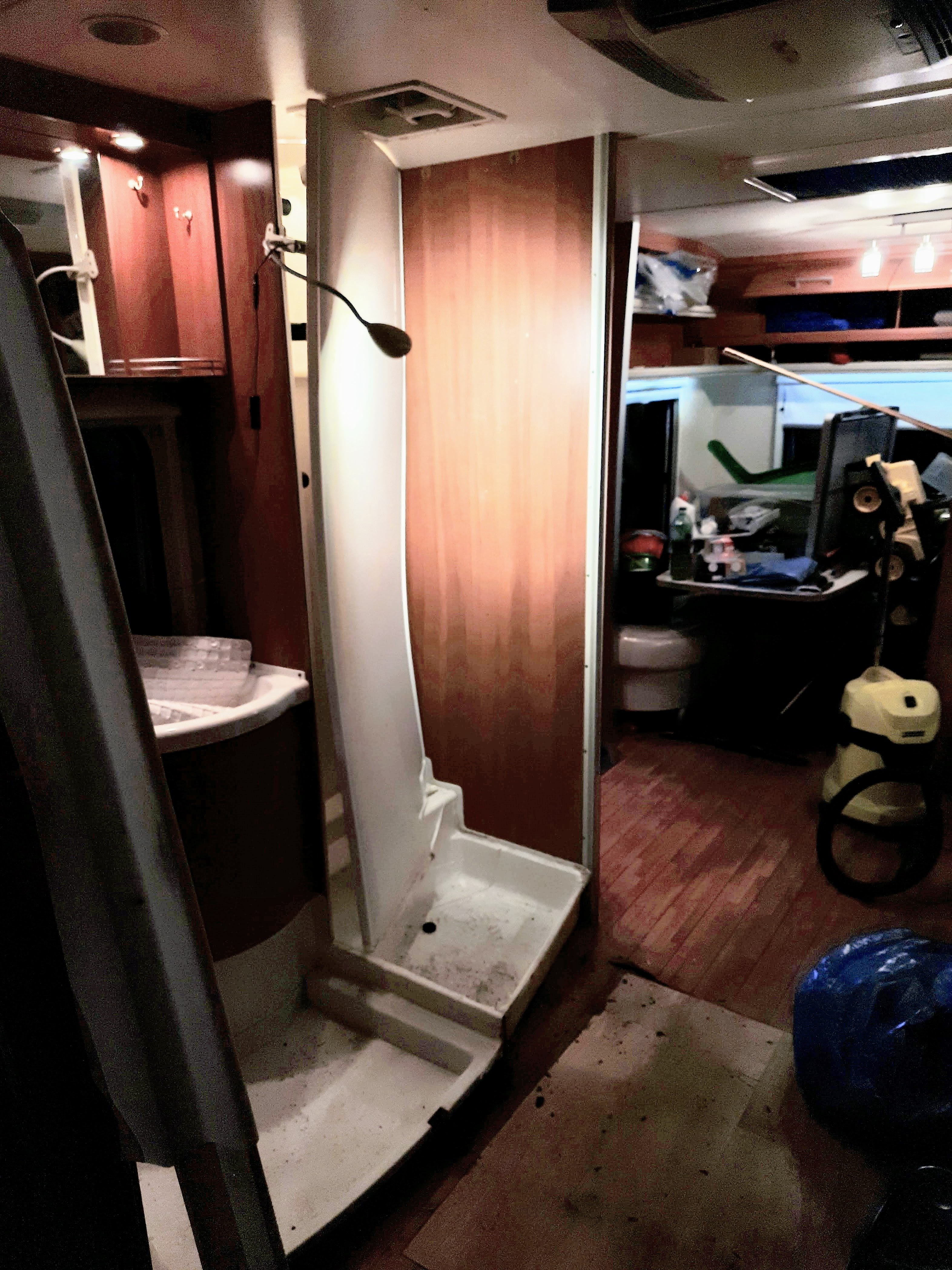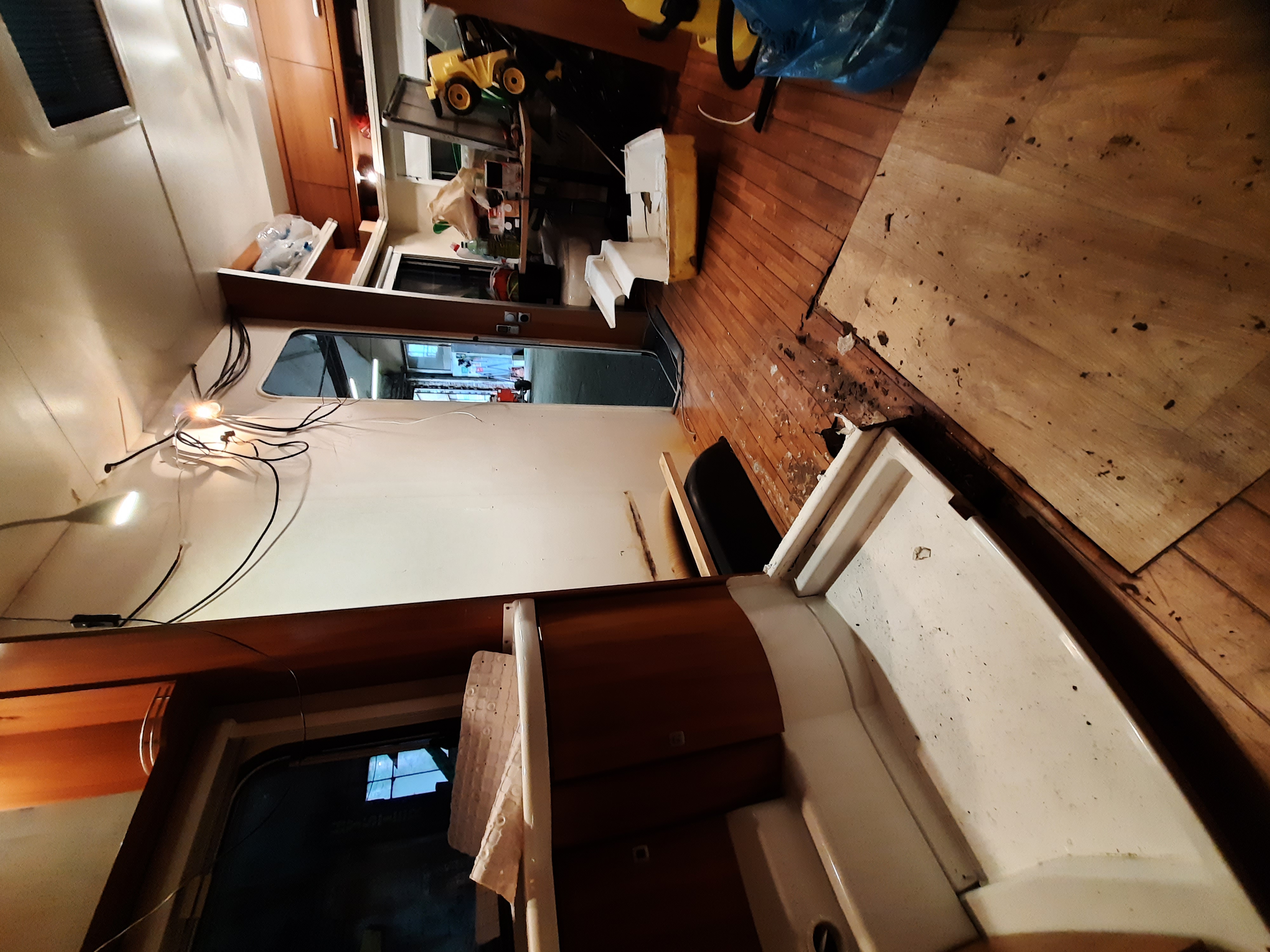 Chodzi o łazienkę - konieczne pełne odświeżenie z dołożeniem kibelka chemicznego, z dostępem do kasety od zewnątrz. Planuje jednoczasowo robić WC z prysznicem w Tabercie i Sprinterze. W zasadzie przy jednej robocie ogarnę oba pojazdy.