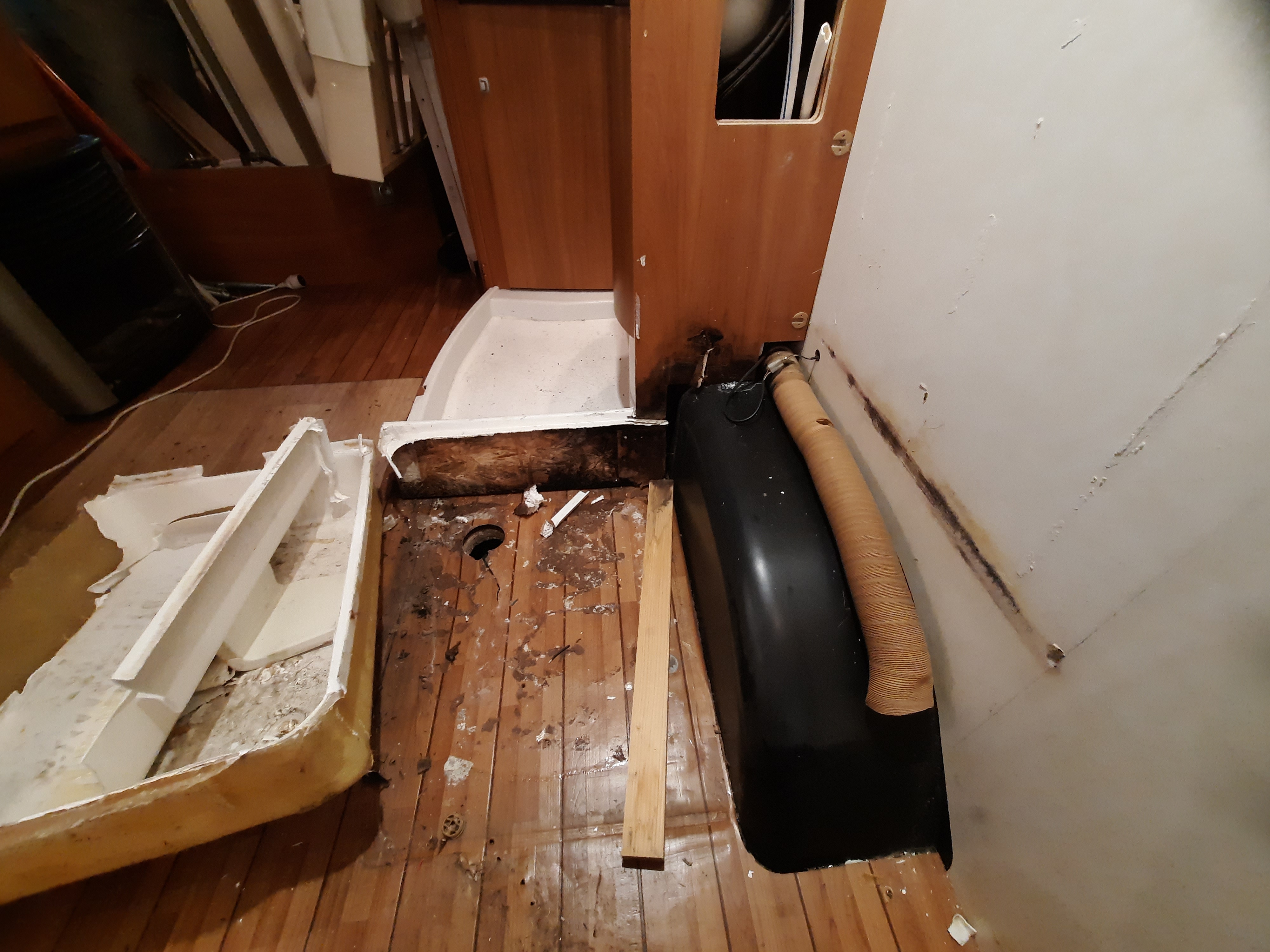 Jakiś czas temu, zapewne jeszcze za czasów poprzednich właścicieli, wnętrze zostało zalane przez nieszczelny brodzik.