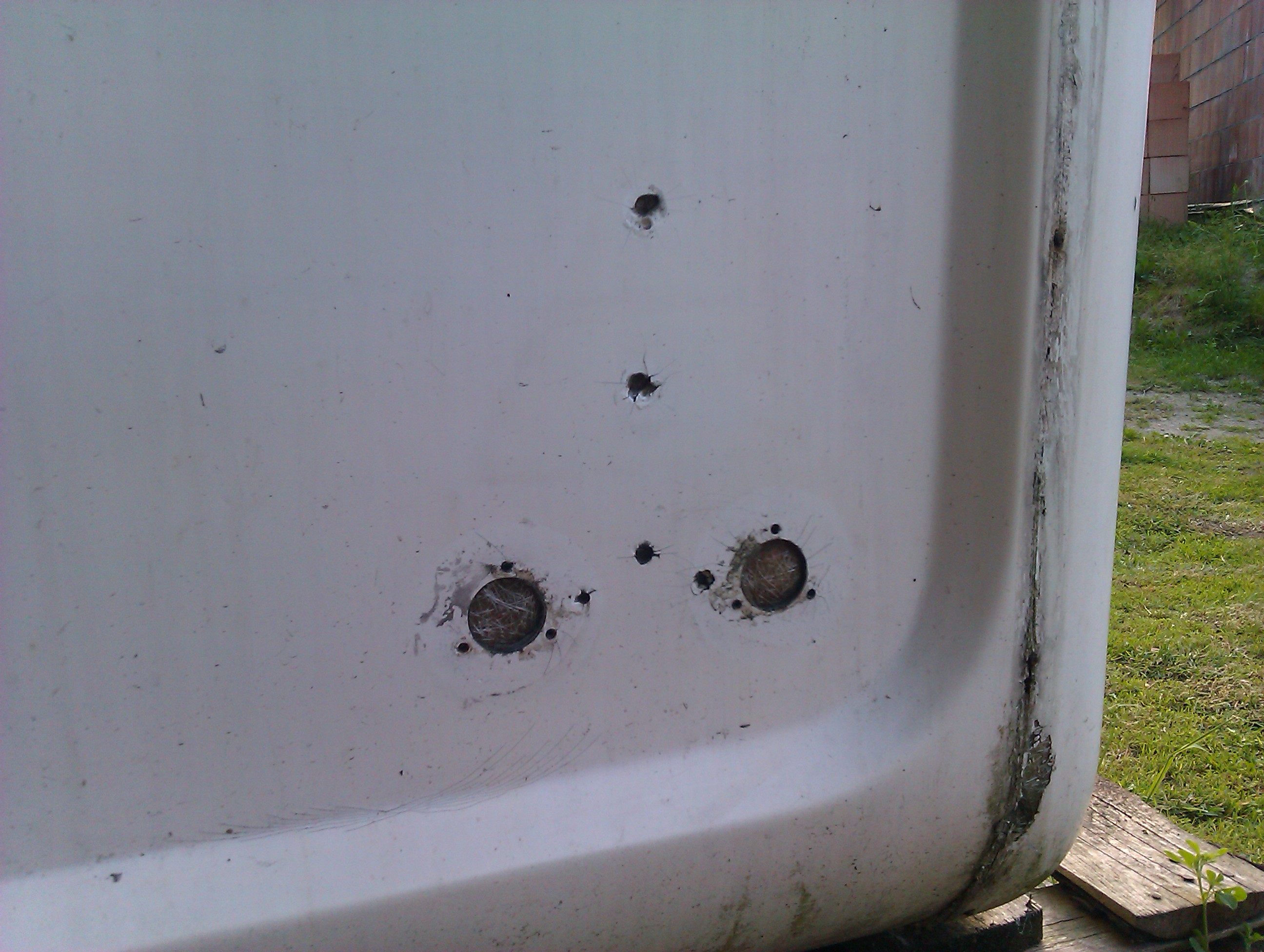Tylko żywica z włóknem. Wcześniej oczywiście dobrze oczyścić -trzeba się przygotować że dziurki i szpary się powiększą po oczyszczeniu. Jak remontowałem swoją to używałem tylko żywicę z włóknem i tkaniną oraz topkot.