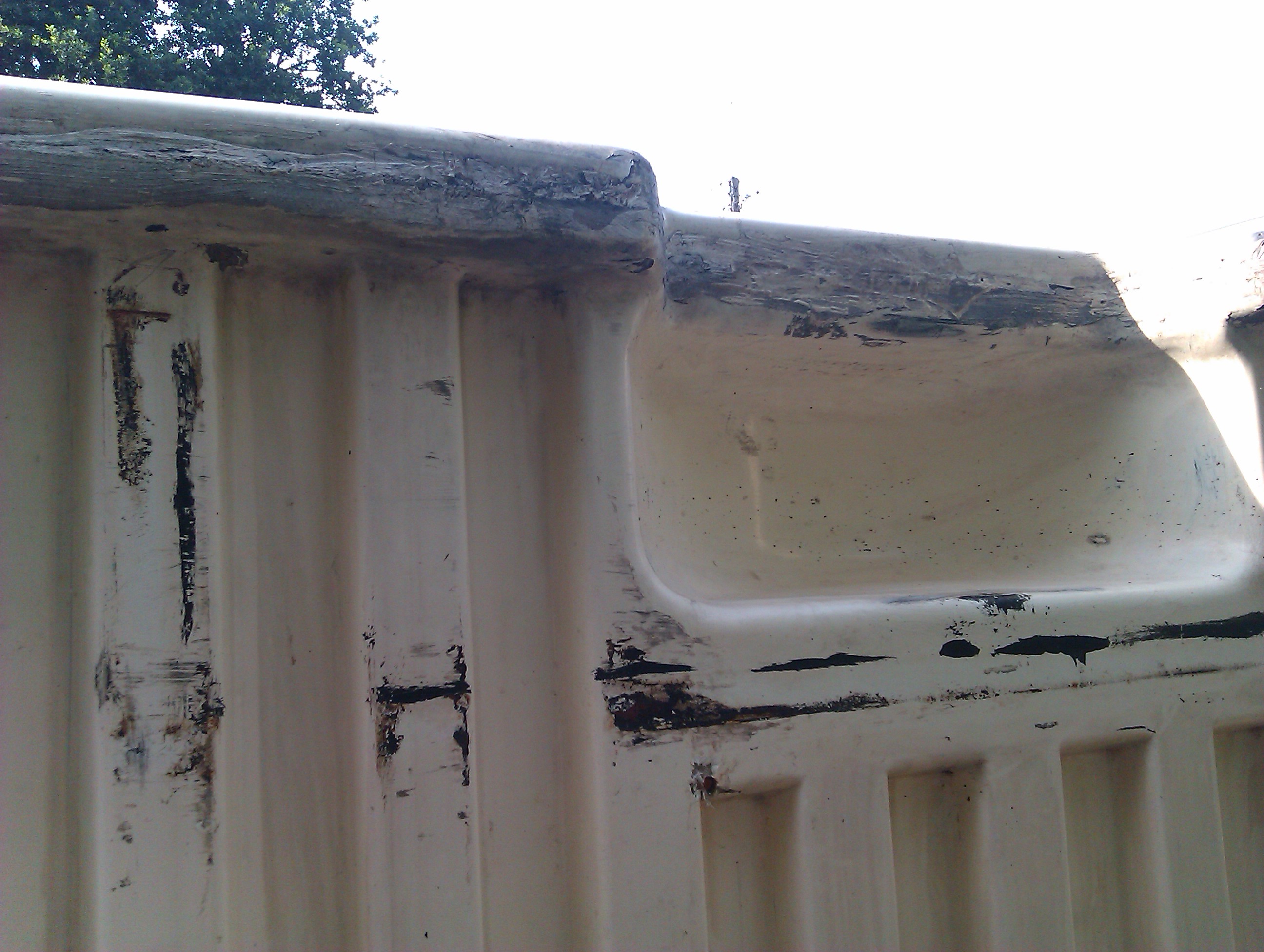 1.zaszpachluj szpachlą w włóknem,w miarę potrzeby mata i żywica.Jak potrzeba również od spodu mata i żywica.