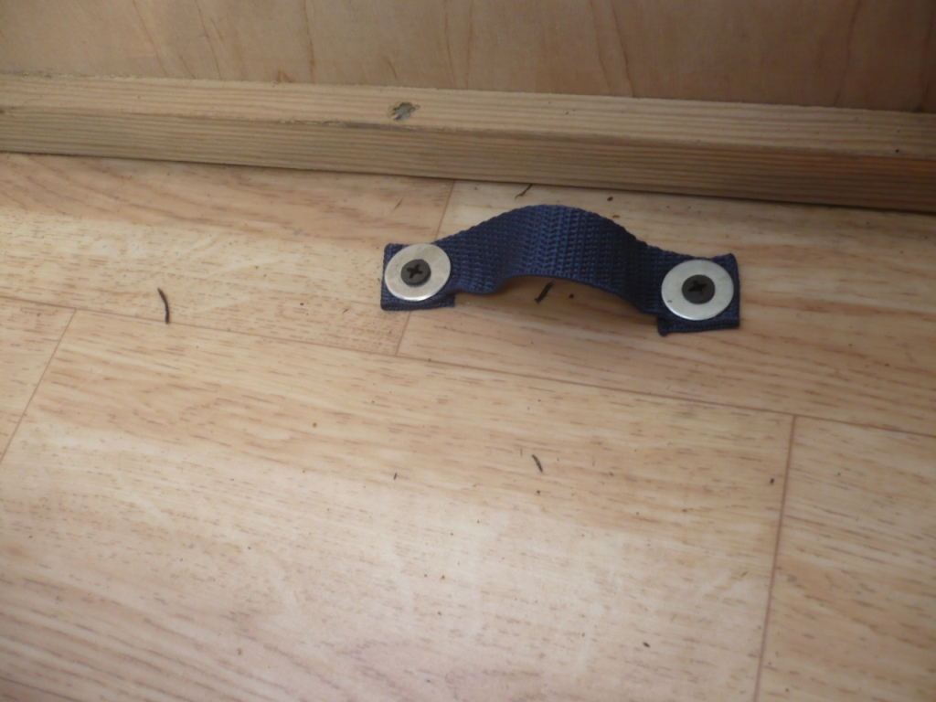 Jeszcze się podzielę prostym patentem na to by ujarzmić rzeczy spakowane w łóżkowych „bakistach”, tak by nie latały na wybojach – proste pętle z taśm troczonych. Przez te pętle przeprowadziłem taśmy zaciskowe i już.