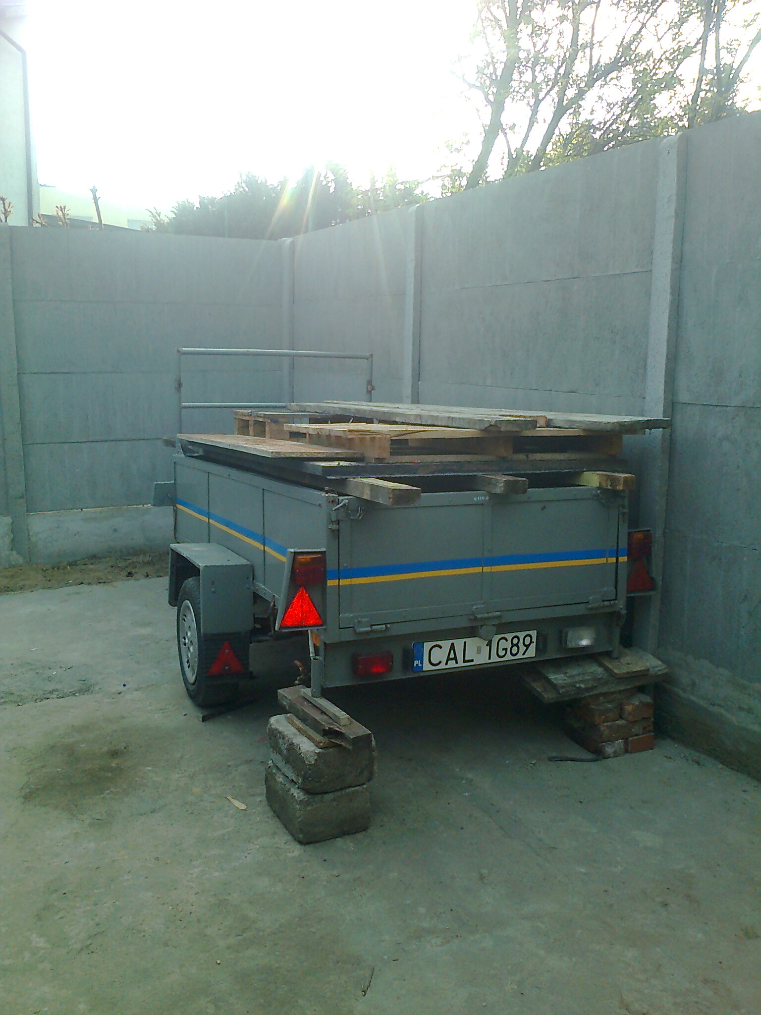 Miała byc to taka troche podróba jednej z towarówek Niewiadowa (nie pamietam oznaczenia), zbudowałem ja sam od zera. Jest mocna solidna, brak jej nadal plandeki i hamulca najazdowego. Była niezastapiona podczas budowy garazu, warsztatu, kanału samochodowego. Służyla nawet jako rusztowanie.