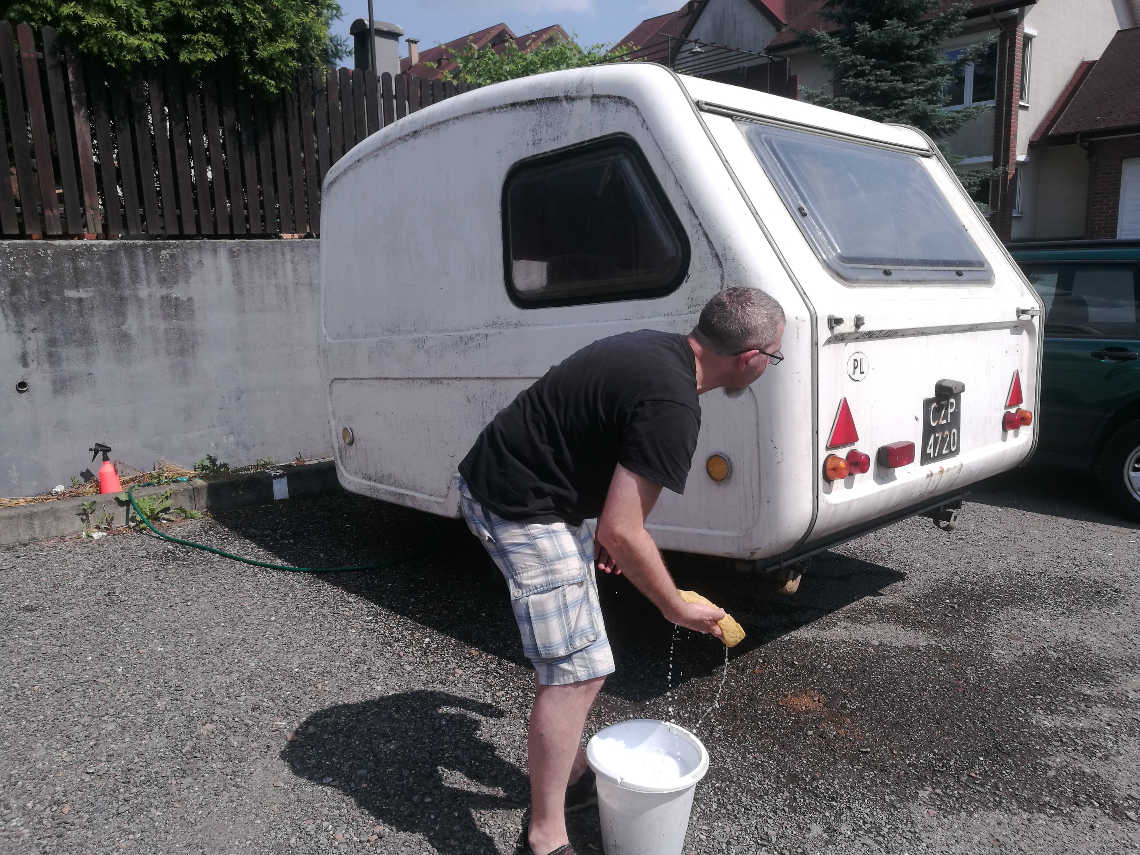 Po przebazowaniu, doprowadziliśmy przyczepę do stanu, który można uznać za zadowalający: Ciekawe, czemu tylko ja jestem na tych zdjęciach? 90% powierzchni przyczepy umyła Ela.