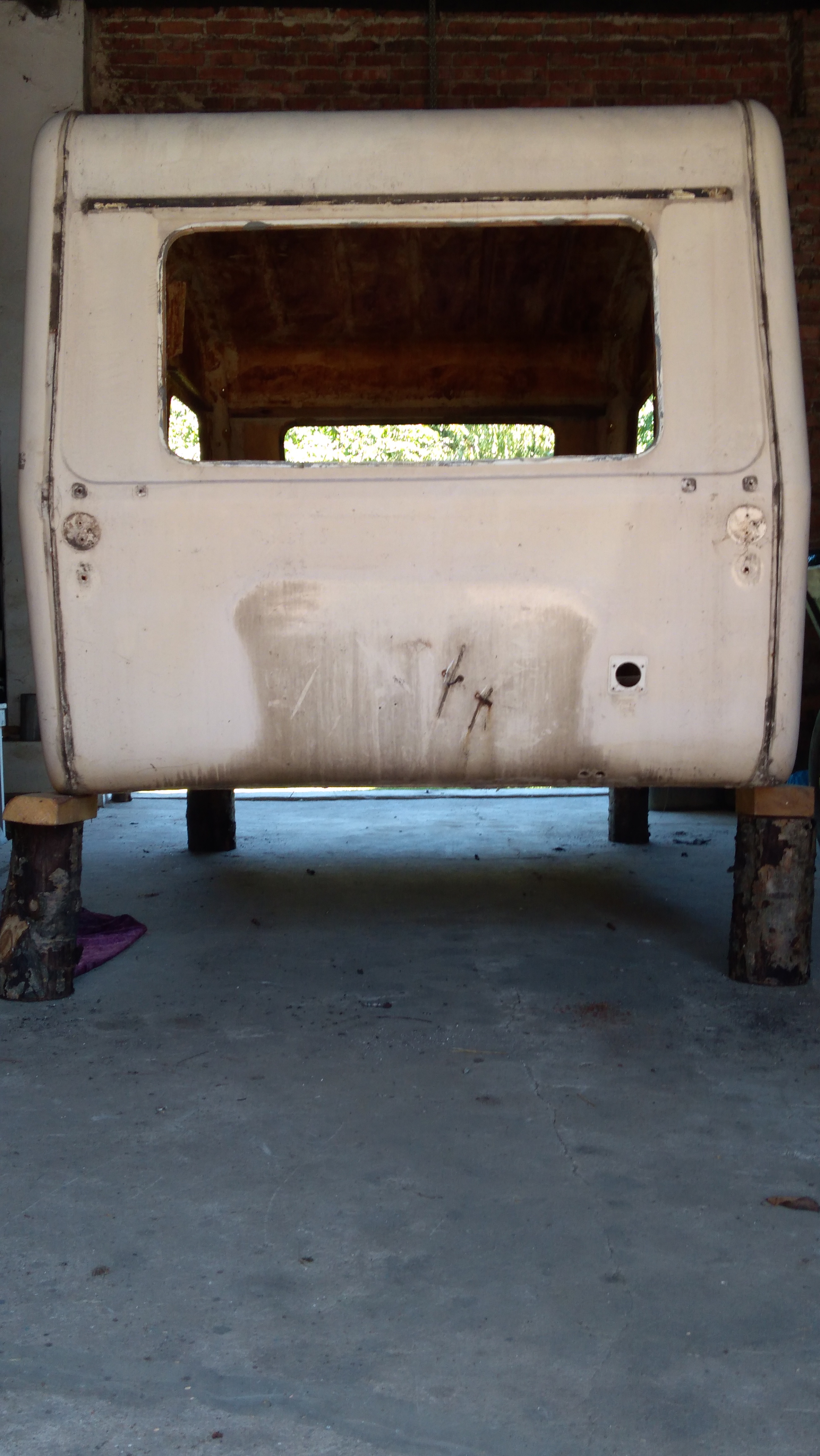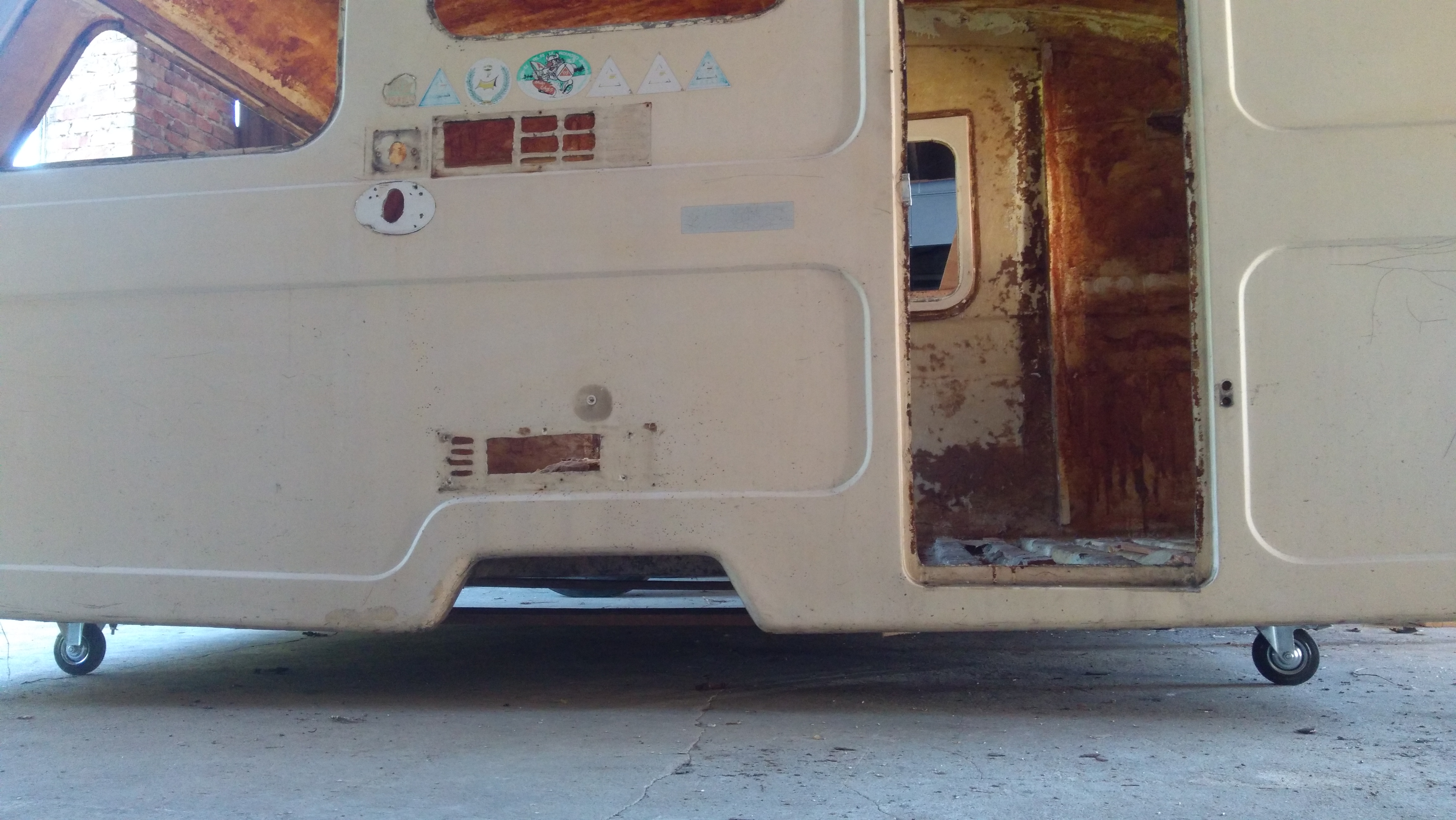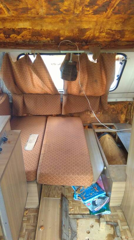 Środek miał zapach publicznego szaletu, wszystkie meble chciały zaatakować przy każdej próbie wejścia do przyczepy, tylnego okna brak, rama....hmm. Wyglądała nawet nieźle :-) do momentu demontażu kufra...