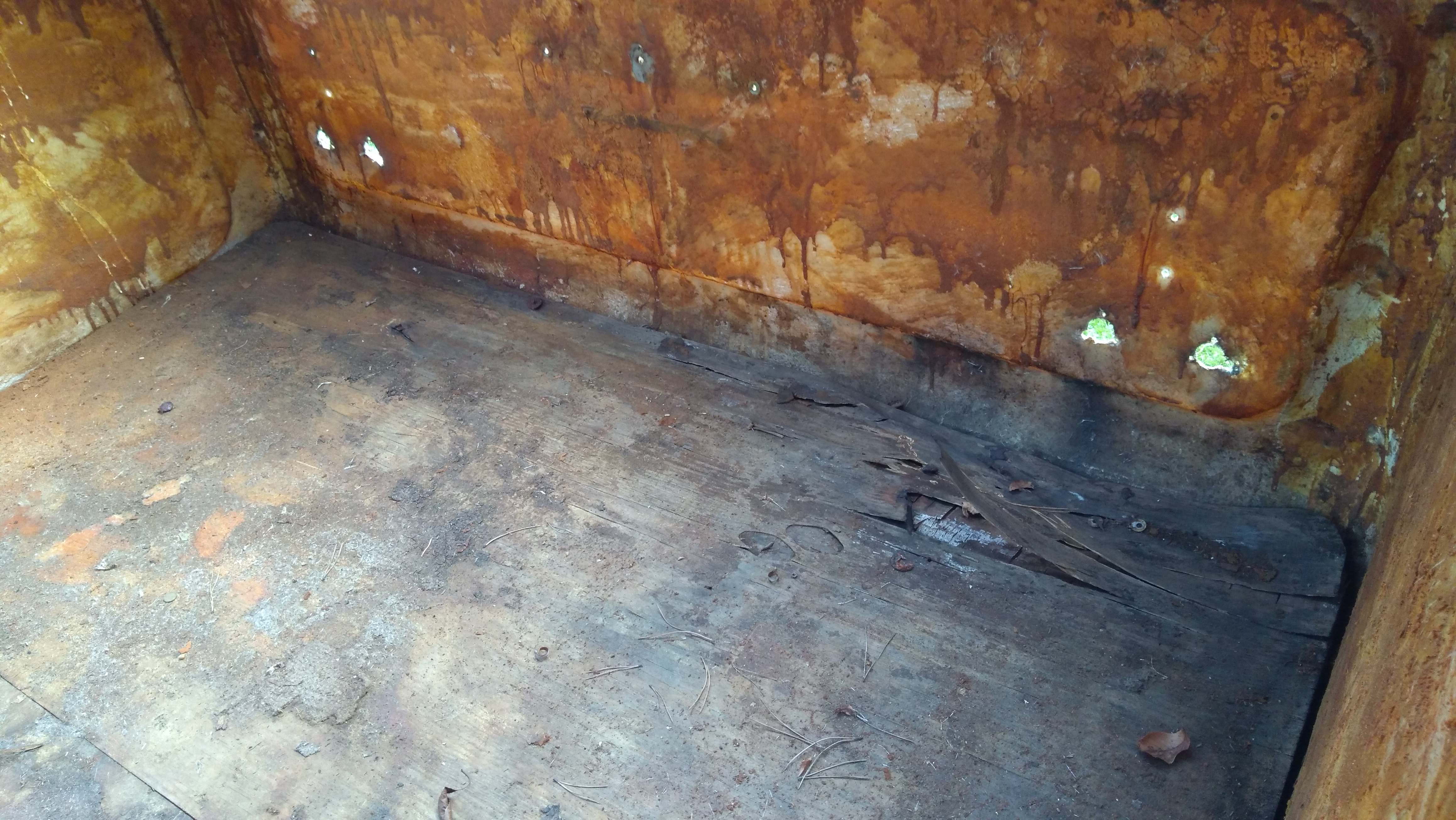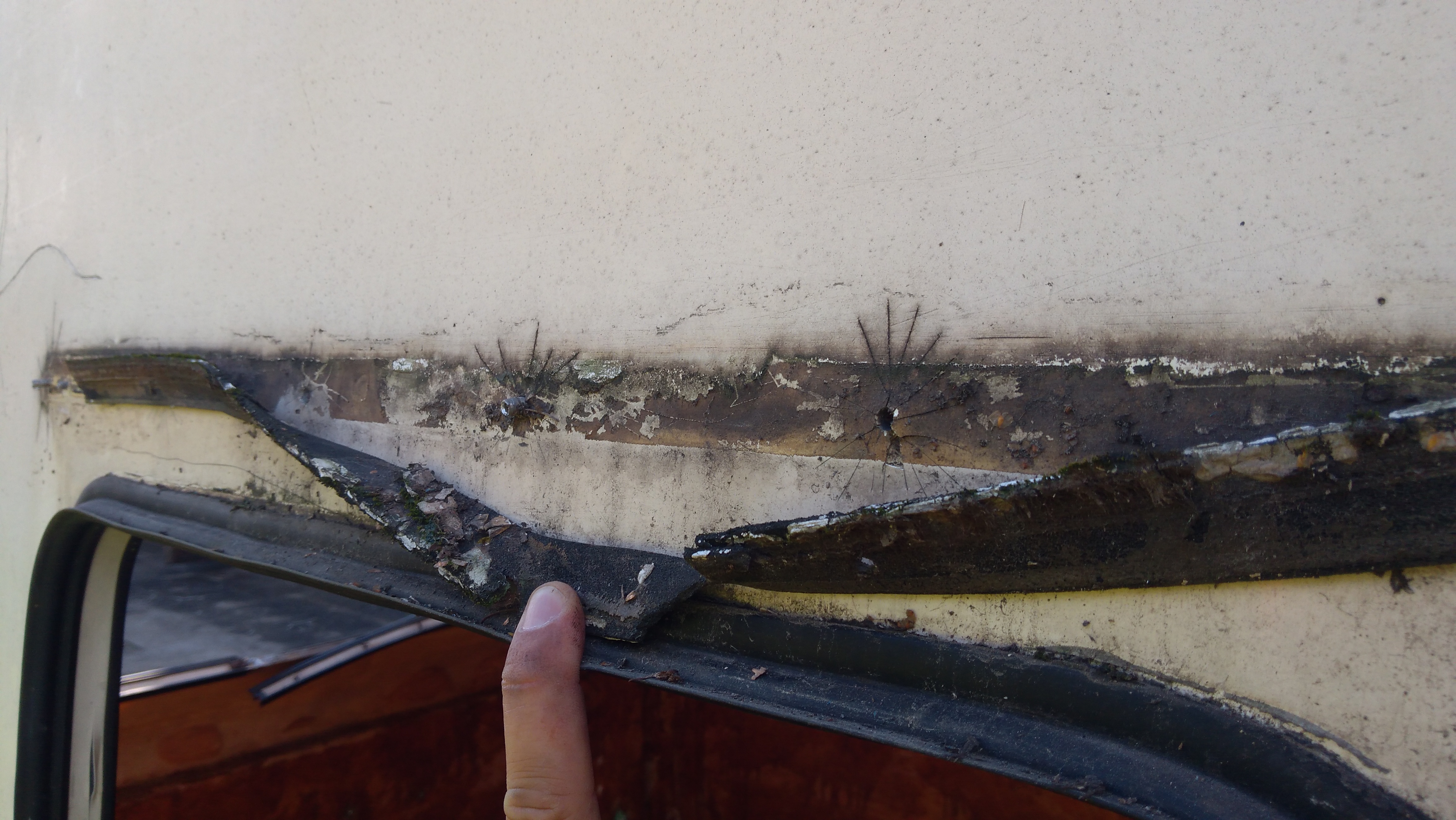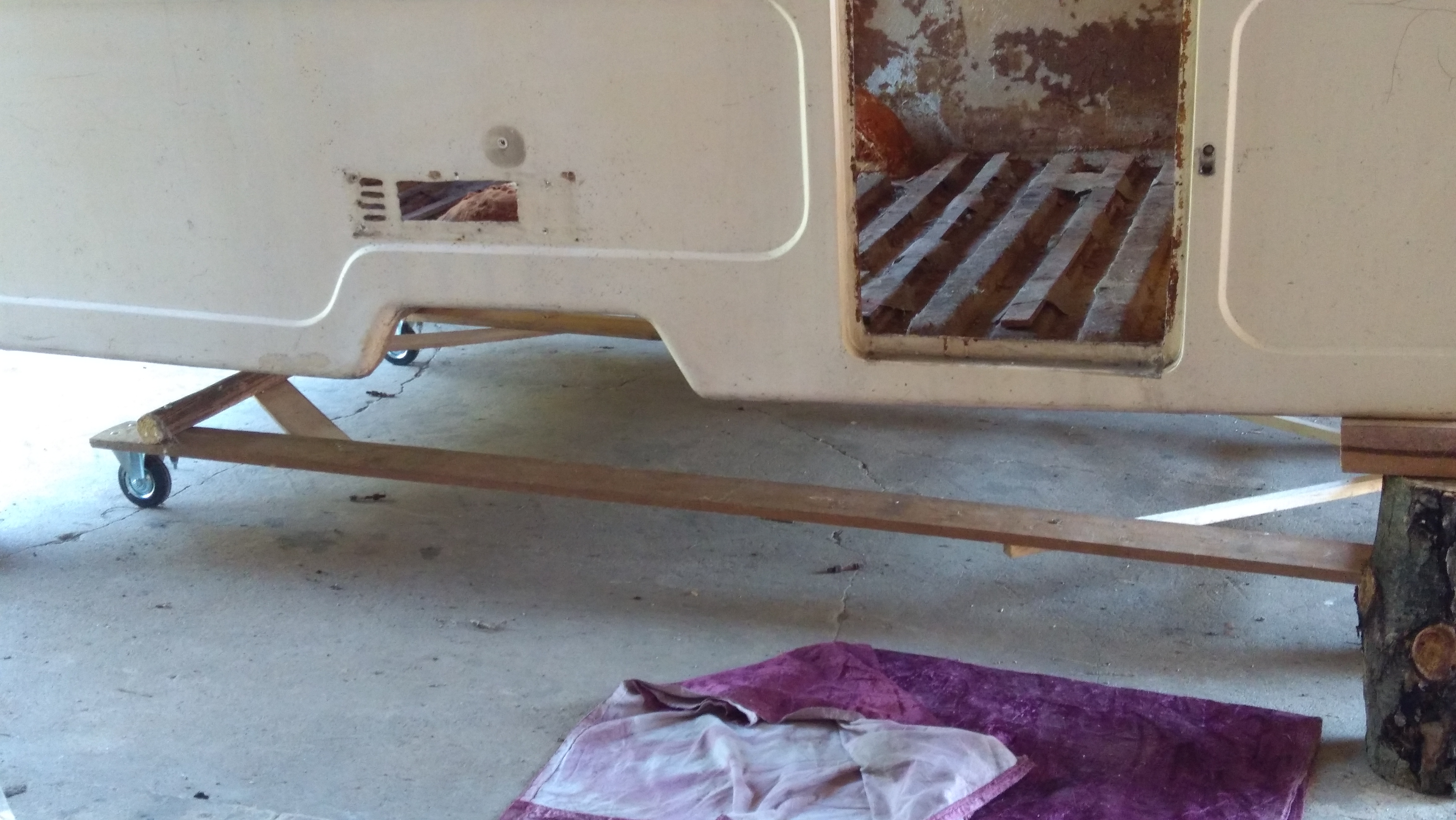 Środek miał zapach publicznego szaletu, wszystkie meble chciały zaatakować przy każdej próbie wejścia do przyczepy, tylnego okna brak, rama....hmm. Wyglądała nawet nieźle :-) do momentu demontażu kufra...