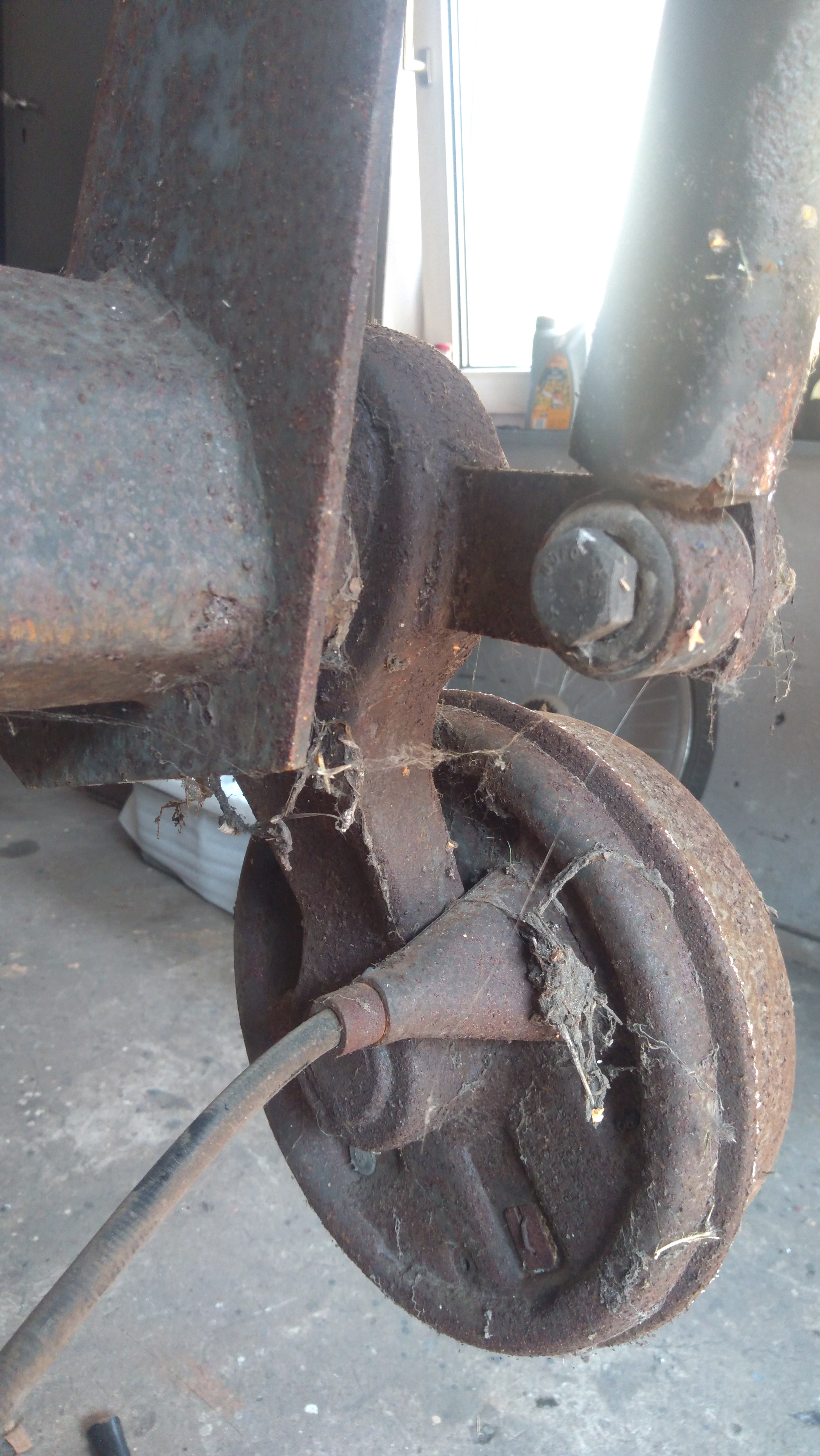 Pod warstwą pyłu, kurzu i pajęczyn ukazał się praktycznie nowy układ hamulcowy.
