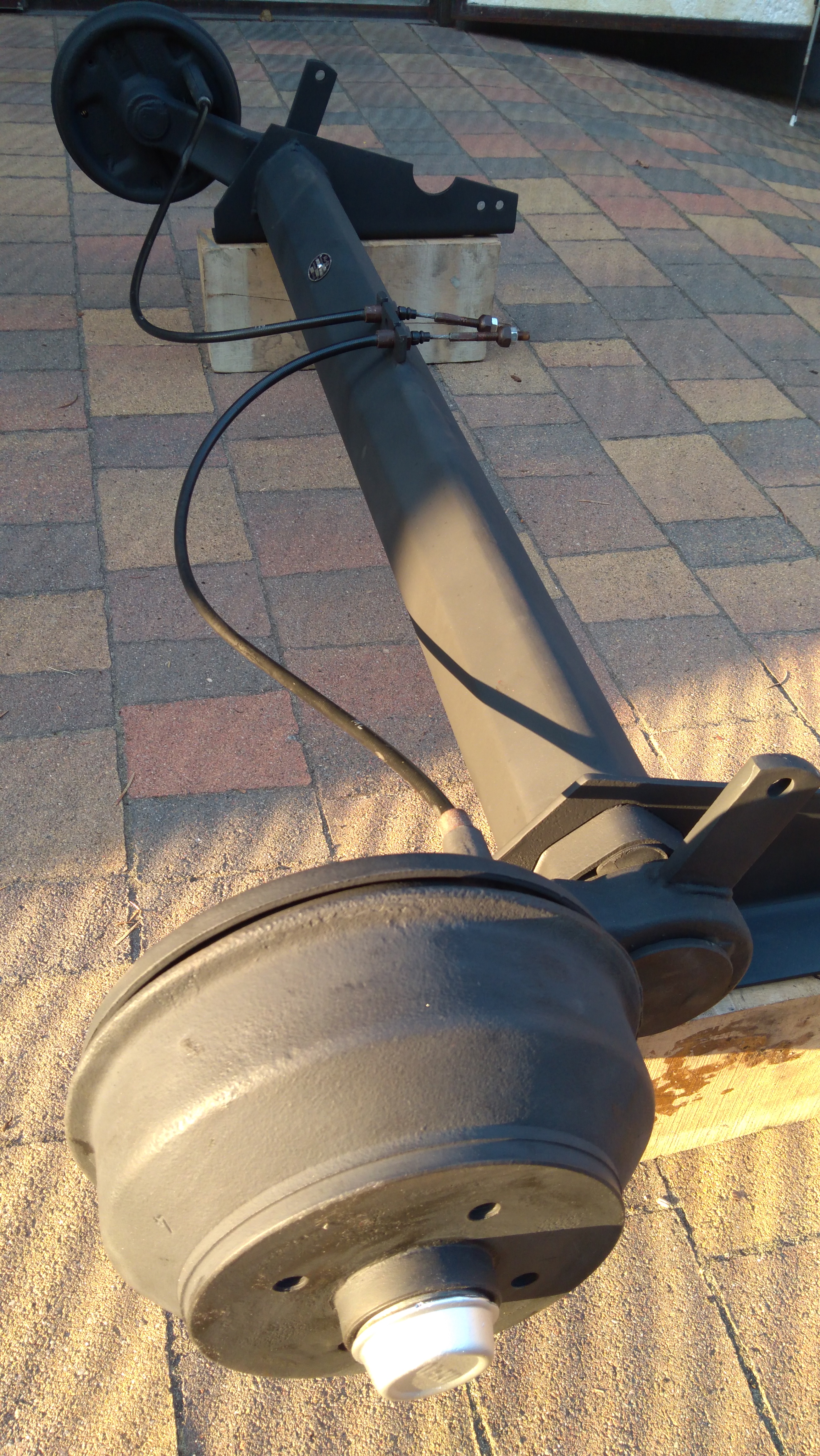 Łożyska nowe założone, cała oś zabezpieczona cynkiem w spray'u a następnie pomalowana "baranem" prezentuje się tak:
