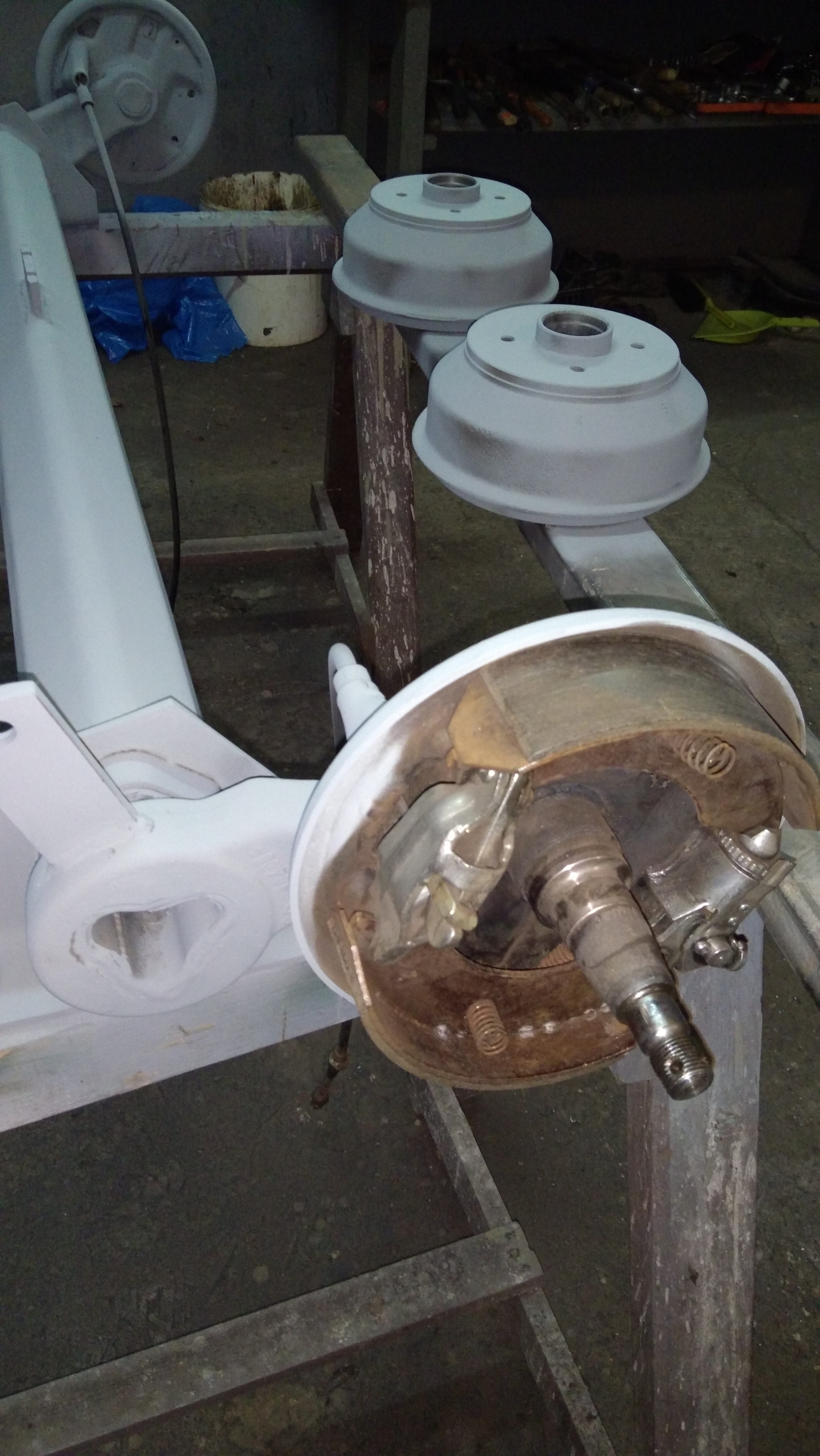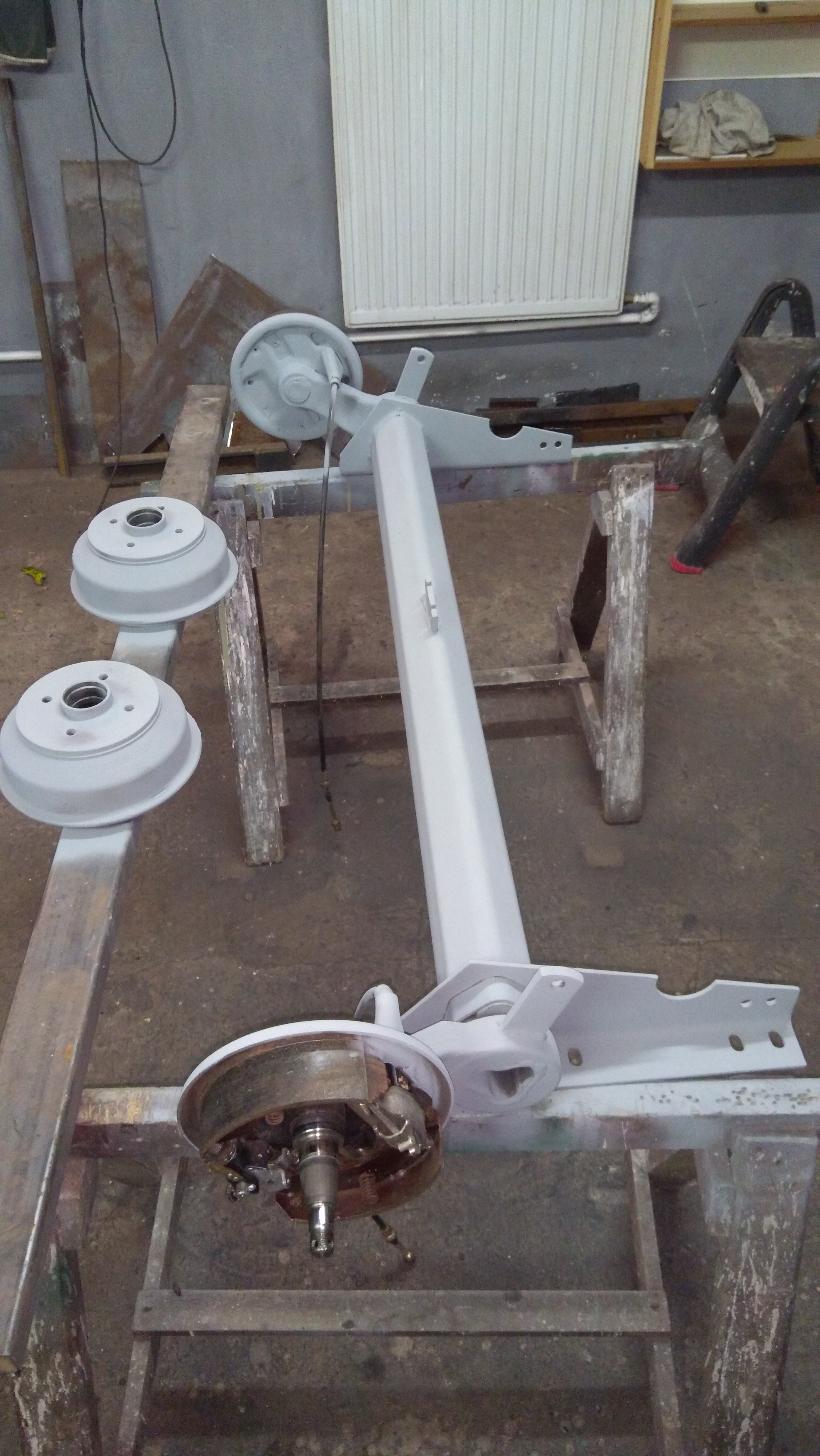 Podczas gdy buda stoi na ramie tymczasowej, zmodernizowana rama główna pojechała do galwanizacji można spokojnie zająć się podwoziem.