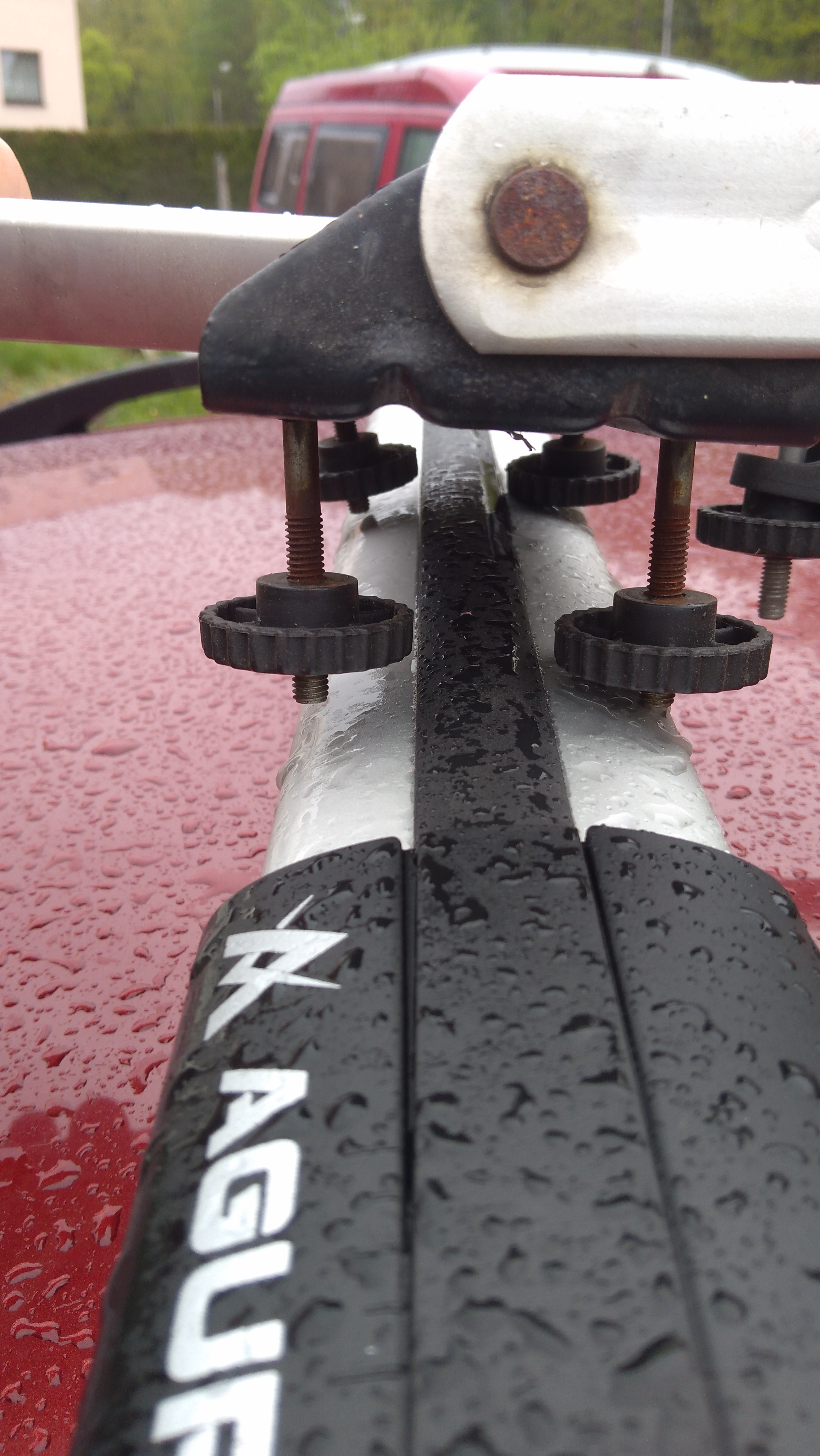 Te belki Aguri wyglądają mega dizajnersko i są faktycznie porządne ale wadą może być to, że są krótkie. To znaczy nie leżą powyżej relingu tylko są rozparte pomiędzy a to znacznie ogranicza możliwości montażowe. Gdy zakładam cztery uchwyty to nieraz po jednym z mocowań skrajnych wypada na zewnątrz względem relingu na dachu a przy tego typu belkach jest to niewykonalne. Tak samo nie założymy na nich jednocześnie wąskiego boxu i dwóch uchwytów rowerowych. No ale jak ktoś nie wozi tyle na dachu to spoko, zaletą jest mniejsza wysokość położenia belek.