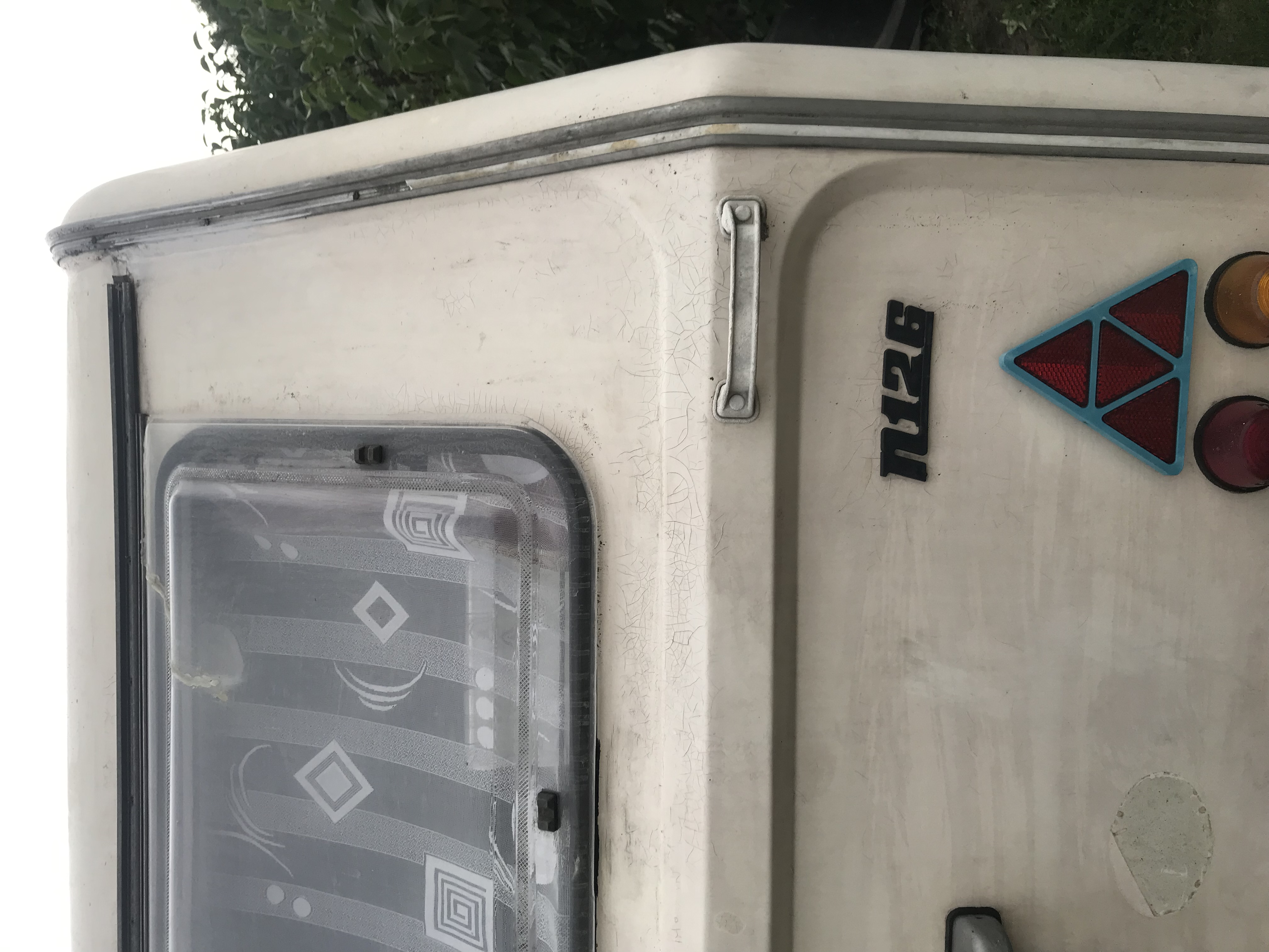 Tak na szybko bo remont domu w trakcie.... Przed świętami otrzymujemy cynk, iż u nas na wsi jest do sprzedania pewien rodzynek. Wieczorem po pracy udajemy się na oględziny. Oto jest :) Rama cała, papiery są, nawet czarna blacha. Fakt... laminat do reanimacji, ale wiek i to, że pewno zawsze stała pod chmurką wyjaśniają to i owo. Obejrzane, mowie się zastanowimy. Przez myśl już idzie - kurczę, ale kemping jeszcze do skończenia zarówno w środku jak i z zewnątrz, garaż zajęty przez Malucha, wiaty zajęte przez auta, tu drewno na opał...gdzie ja to postawie?...