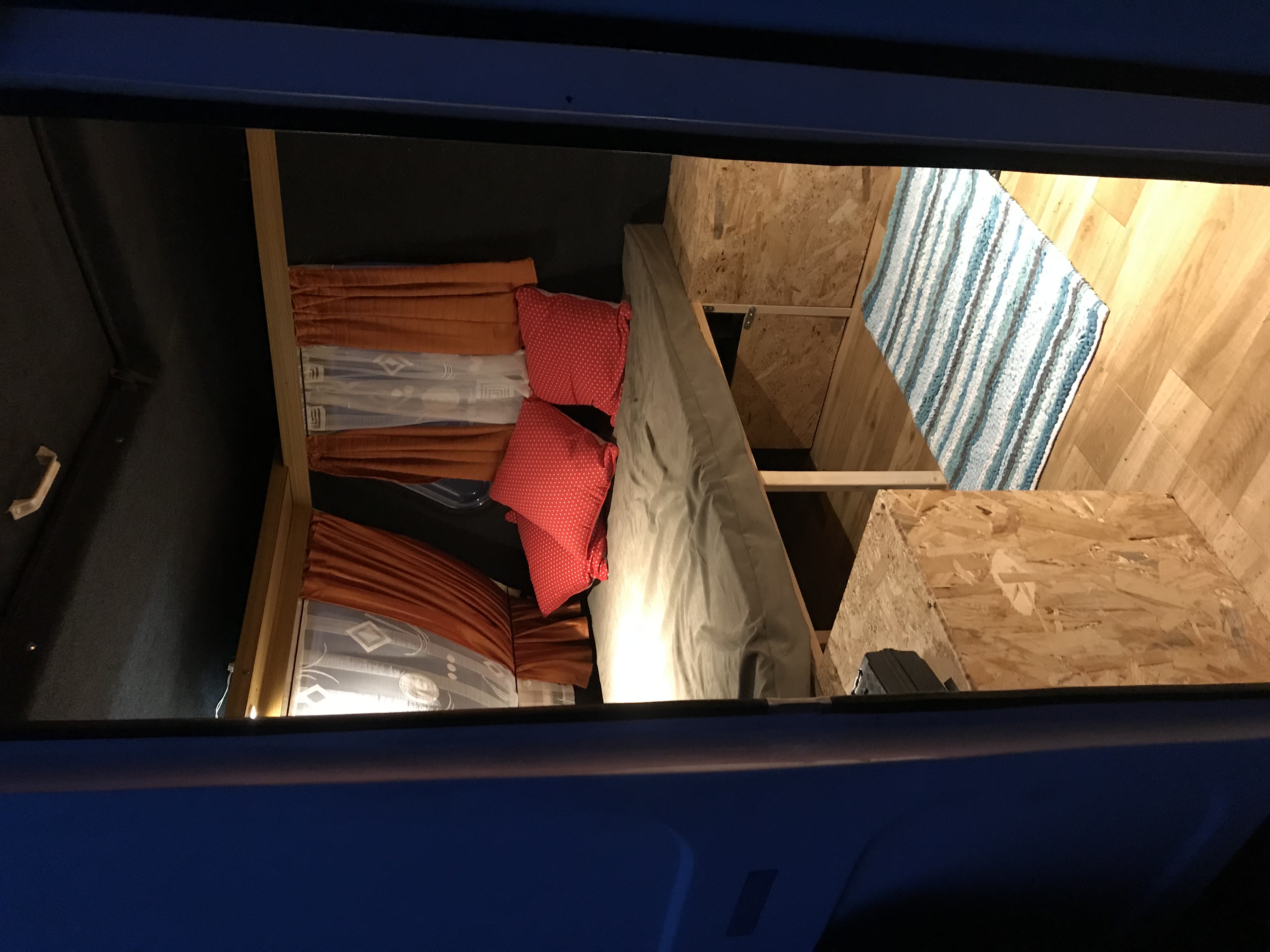 Mam nadzieje, że dotrzemy, bo Magda wymyśliła Bieszczady.... Jeżeli chodzi o konstrukcje, możesz iść spokojnie, ale pamiętaj ze potrzeba wzmocnień. Rozmawialiśmy chwile na ten temat ze Sztekerem. OSB lżejsze, ale! Bardziej kruche. Pod szkieletem łóżka jest 14 podpór. Jeszcze dodatkowo beleczki po długości i szerokości i na to płyta 12mm. Szafki zrobione z płyty 9mm. Po urlopie robię pufo/łóżko pod ścianą i marzy się jeszcze zrobienie szafek oraz blatu pod oknem przednim.